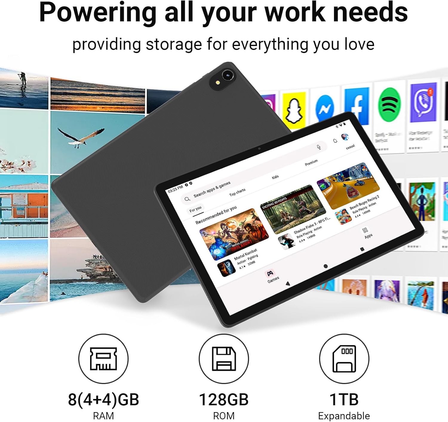 Review: This tablet offers exceptional performance, a stunning display, and impressive battery life, all at an affordable price.Powerful Performance & Smooth Operation:The unison T606 octa-core processor provides seamless performance. Whether I’m multitasking, streaming, or gaming, everything runs smoothly without lag. The 8GB RAM (4GB + 4GB extended) ensures faster app launches, and the 128GB storage (expandable to 1TB) allows me to store all my favorite apps, movies, and files with ease.Vibrant 11-Inch IPS HD Display with Widevine L1:The 1280×800 HD IPS Incell display is absolutely stunning! Colors are bright and crisp, making video streaming and reading enjoyable. Plus, with Widevine L1 certification, I can watch Netflix, Amazon Prime Video, Disney+, and YouTube in high definition.Long-Lasting Battery & Excellent Audio:With a 7000mAh battery, I can use the tablet for hours without constantly reaching for a charger. The Type-C charging port is a great touch, offering faster charging. The dual stereo speakers provide rich, immersive sound, making movies and music even more enjoyable.Reliable Connectivity & Decent Cameras:The 2.4G/5G dual-band WiFi ensures a fast and stable connection, and Bluetooth 5.0 pairs effortlessly with my headphones and speakers. The 5MP front and 8MP rear cameras take clear photos and work well for video calls.Final Thoughts:If you’re looking for a high-performance, budget-friendly tablet with great storage, a fantastic display, and solid battery life.