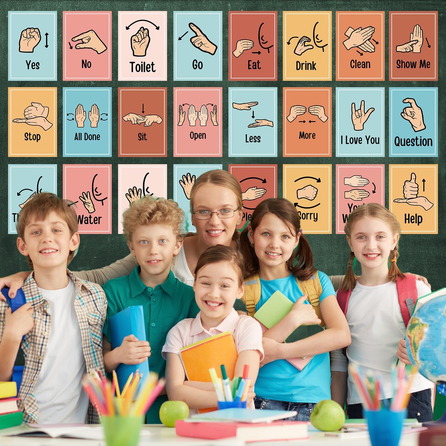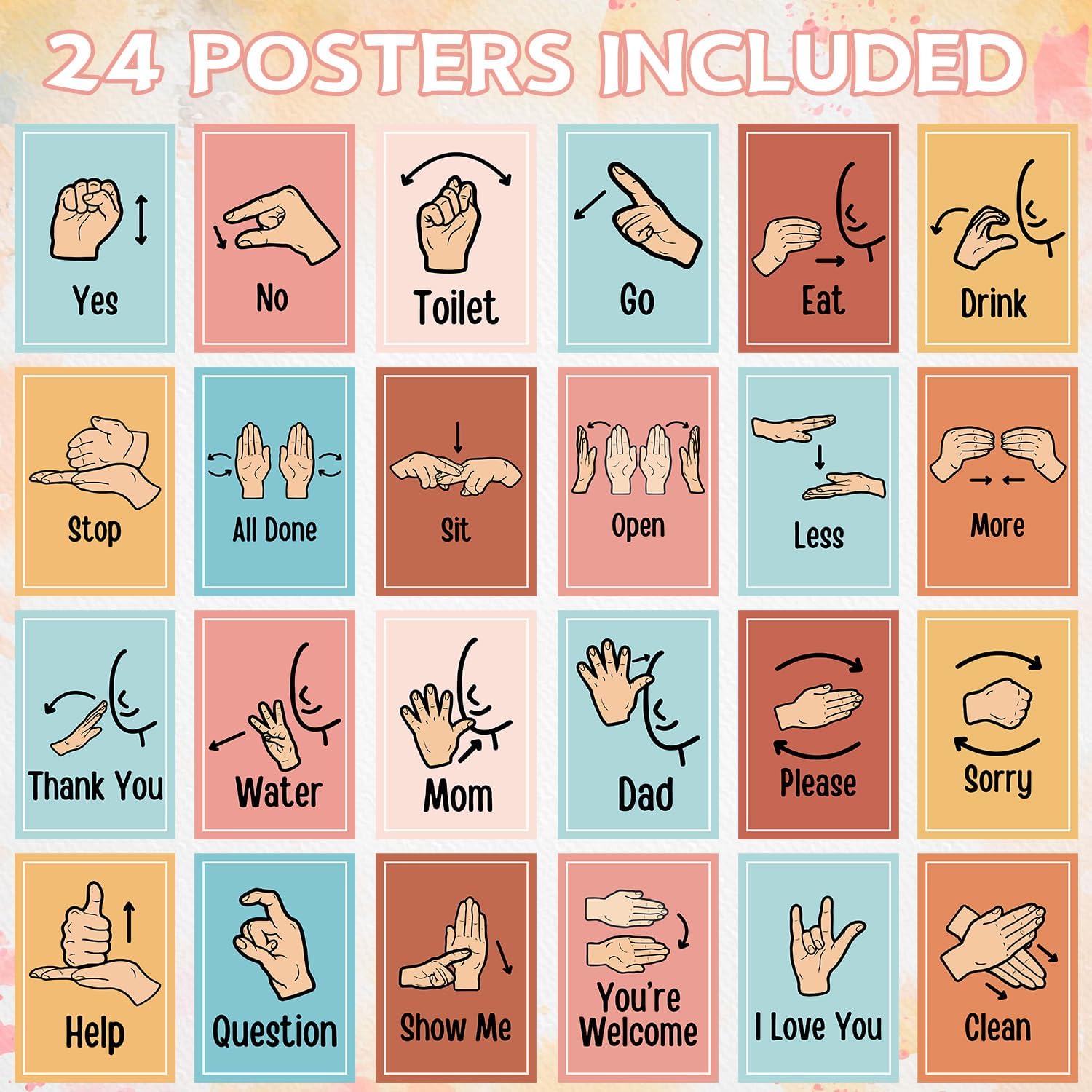 , Office Products > Office & School Supplies > Education & Crafts > Arts & Crafts Supplies > Classroom Decorations > Educational Charts & Posters, #Aposwow #Sign #Language #Posters #Classroom #24Pcs #Common #Words #Phrases #Han..,