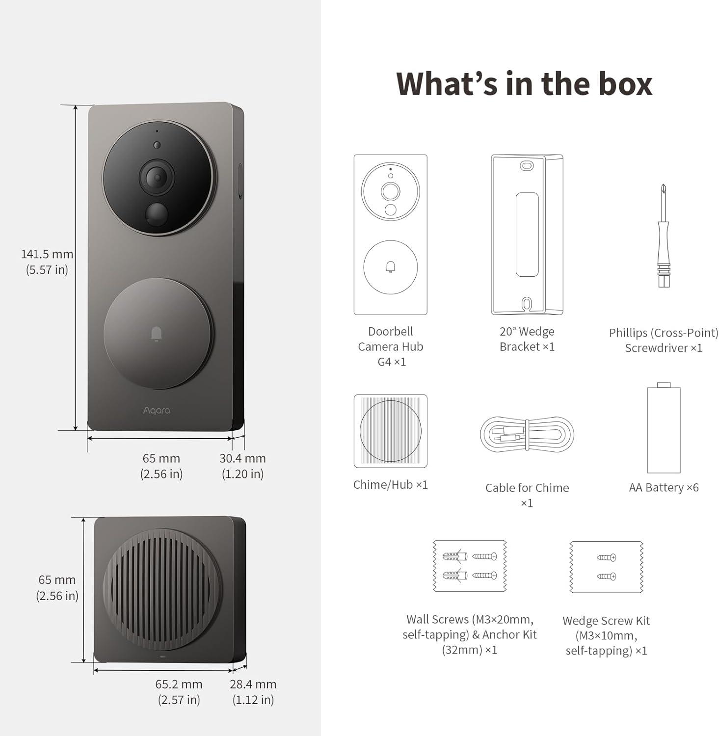 Review: I recently replaced my Wemo Video Doorbells with this Aqara G4. I could not be more pleased with the upgrade. This review is written after three weeks of continuous use. I have generally found that Aqara devices just work without hassle, hang-up, or mishap out of the box. The G4 Video Doorbell was no different. Wired installation was a breeze (and having batteries installed as a backup is a bonus). The video quality is excellent. Homekit limits you to 1080 but somehow the picture looks obviously more detailed and superior to our prior doorbell cameras. I’d also add that both within Homekit and Aqara’s App, the “load” time for real time video is much quicker compared with the Wemo’s as well as our Eufy indoor cameras. That’s super handy when responding to alerts or doorbells. I wasn’t sure about the internal chime, but after using it a bit I can say they are great. Easy install of a microSD allows you to keep extended recordings locally (Homekit secure video stores video for 7 days). Because the chimes are installed indoors they are not at risk for being stolen. It’s easy to assign different chimes to each doorbell so that we always know which doorbell is ringing. We’re an Apple Homekit home and integration is flawless. Connectivity has been outstanding and we’ve not lost connection once still installation – my Wemo’s would drop at least once a week. Finally, I want to acknowledge that Aqara cleverly safeguarded the security screw that must be loosened in order to change the batteries (not that I will do that often given our wired configuration) – I dropped that screw on my Wemo’s on multiple occasions and it was a real nuisance to find it again. All in all, the Aqara G4 Video Doorbell delivers excellent performance, a great picture, and outstanding integration with Homekit.