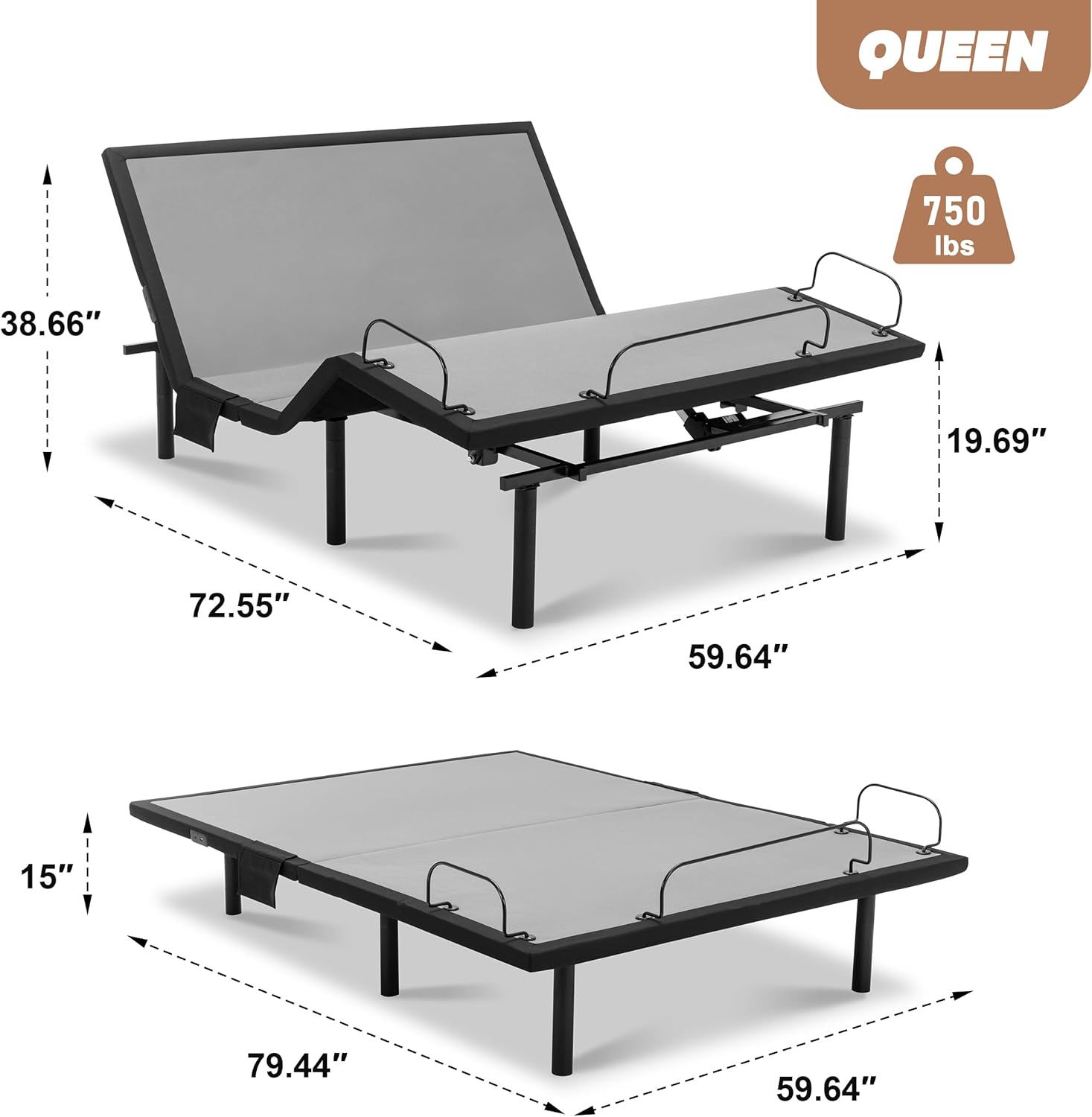 Review: Like most, after researching comments and prices, I decided to buy this adjustable base from the ASONLY brand. So far I can say that it has been a wise choice. The base stands out for its firmness, good finish and its SILENT MOTORS. I consider it to be somewhat heavy, if there can be three people to help move it it would be better. Very simple instructions, easy to assemble, just put the legs on it and turn it over. It fits perfectly within the frame of our double bed. It has improved the feeling of comfort and improves the height of the mattress noticeably. All its functions have worked correctly. I am satisfied with the purchase made. Thanks.