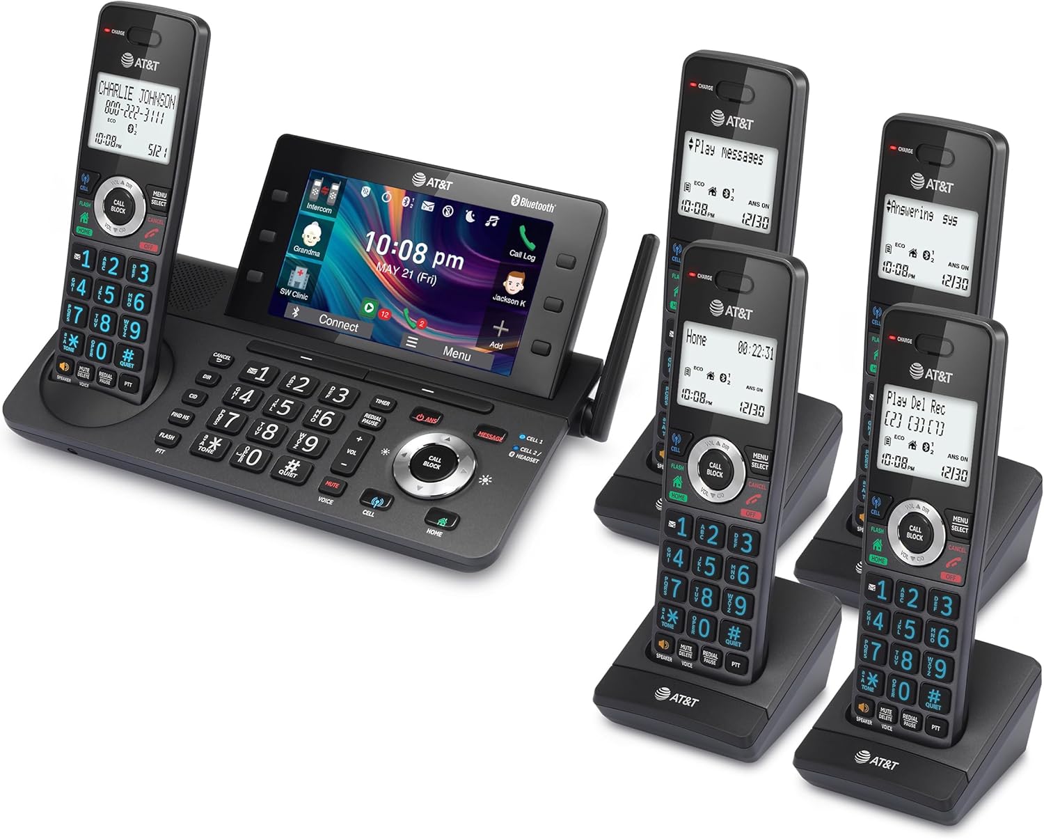 B0DT9PWJYW, With the AT&T DLP73590 5-Handset Expandable Cordless Phone with Unsurpassed Range features the industry’s largest 5″ color base display, managing your communication has never been easier. Assign shortcuts on the large display for quick access to features that are important to you and easily view all the relevant information from messages left on the answering system. With Bluetooth Connect to Cell and Smart Call Blocker, you won’t have to worry about unwanted calls waking you up in the middle of the night or tying up the line. Robocalls are automatically blocked from ever ringing…, 4, , Office Products > Office Electronics > Telephones & Accessories > Landline Phones, #ATT #5Handset #DECT #Cordless #Home #Business #Phone #Answering #Machine..,