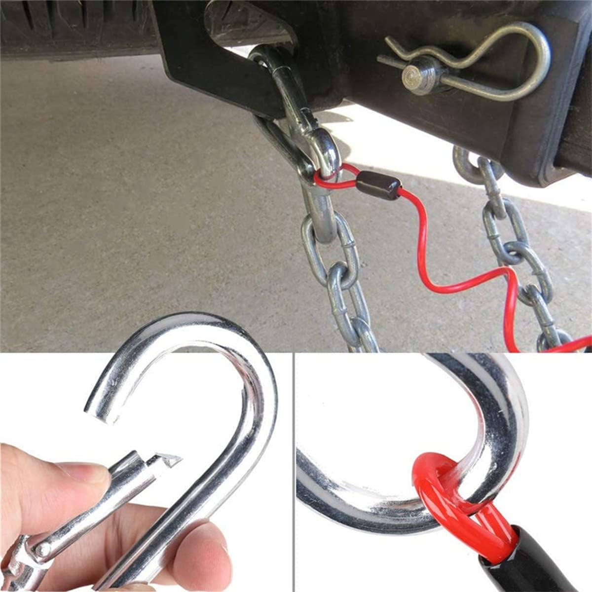 【Coiled Design】: We have designed the trailer safety cable to be flexible and coiled. Helps prevent towing and tangling, keeps the cable off the road, allows slack in turns, and is free to stretch and extend up to 4.92 feet. Helps ensure your tow vehicle doesn't become out of control when disengaged.