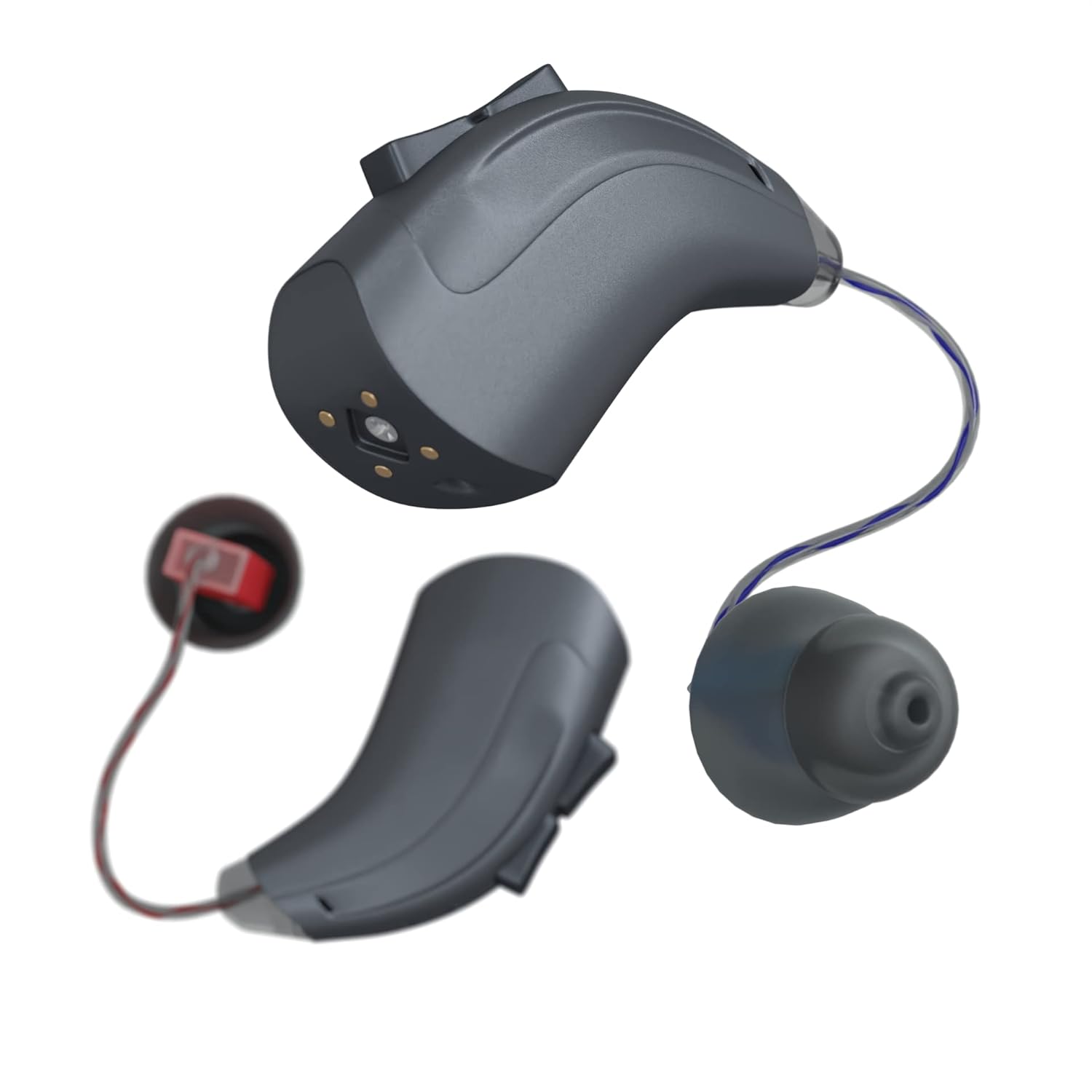 Review: My wife was tested five years ago and was found to have some hearing loss which we knew on our own. She test drove a set of (at the time) 7K dollar hearing aids and they were inside the ear canal hearing aids. It was not a good match for her so we decided to postpone that for the time being. Now she has noticed more loss and a friend allowed her to try his set on for just a short while at a dinner party and that was a great help. These are behind the ear and have a better sound than the 7K dollar set. So much so that I ordered this set for her right away and she has been using them for a month now and she likes using them, the charging case is convenient and the charge seems to last her almost all day at work.Wearing hearing aids for the first time is no cake walk and it does take some getting used to and this set has helped her to acclimate herself to just Using hearing aids that it gives us time to consult a audiologist and get better info on new sets as the technology gets better all the time. Most likely we will keep these in the top drawer for the backup set because as we all learn…two is one and one is none. 😉
