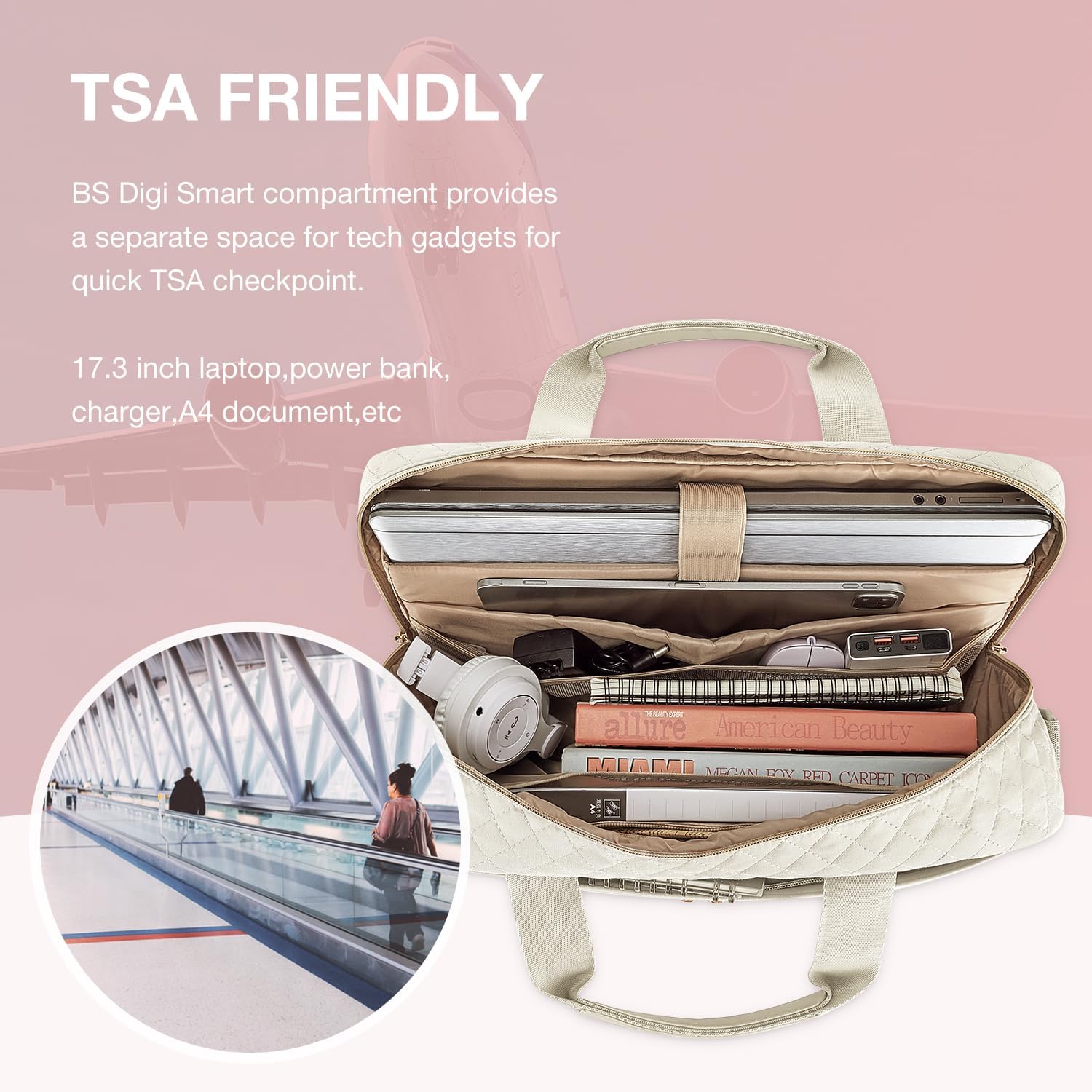 TSA FRIENDLY- Convenient at checkpoint. A separate tech compartment with large opening design can make you quickly pass at airport security, and three pockets in main compartment also keep your tech gadgets tidy.