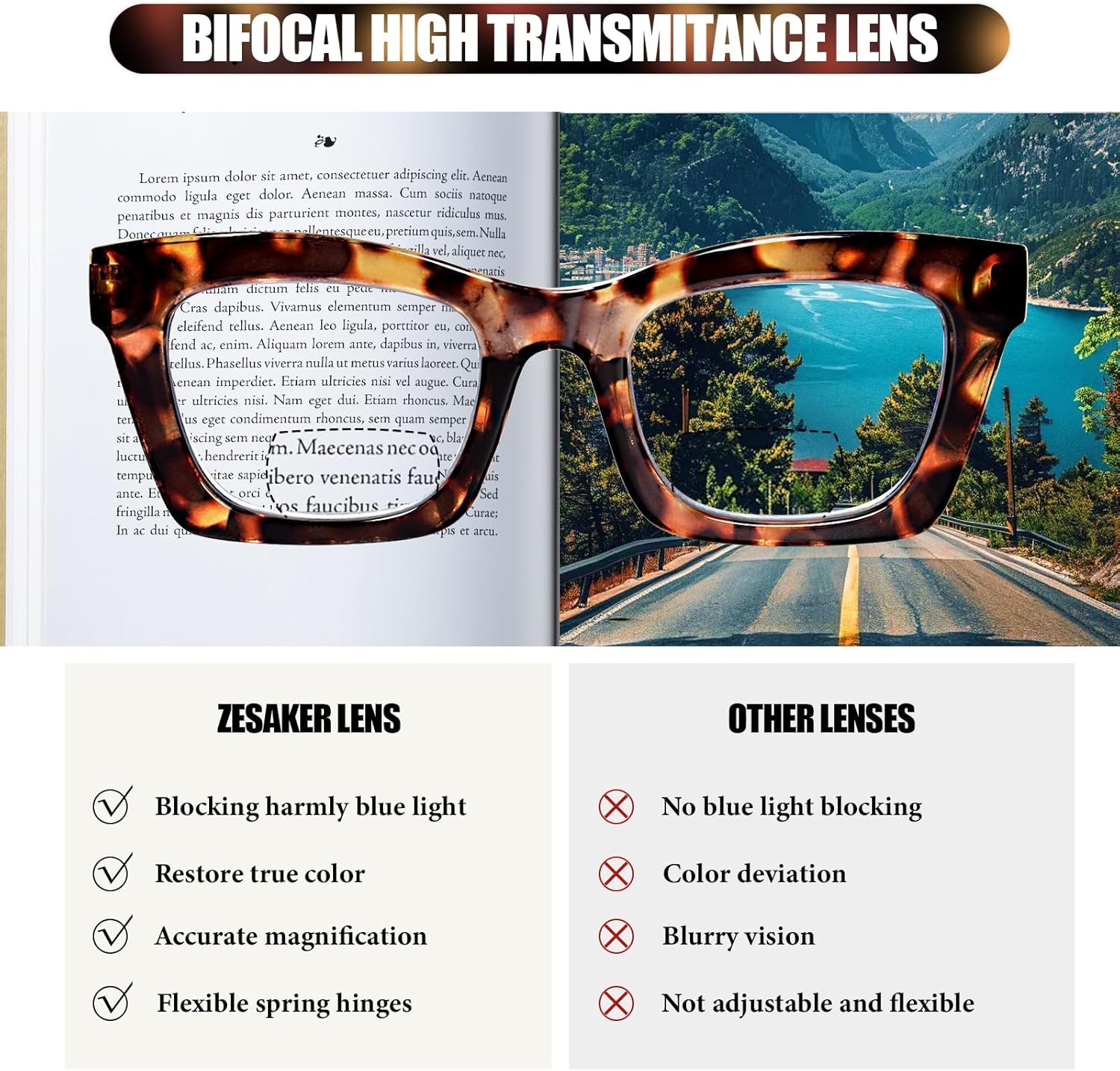 , Health & Household > Vision > Reading Glasses, #Bifocal #Reading #Glasses #Women #Oversized #Square #Frame #Clear #Top #Progressive #R..,