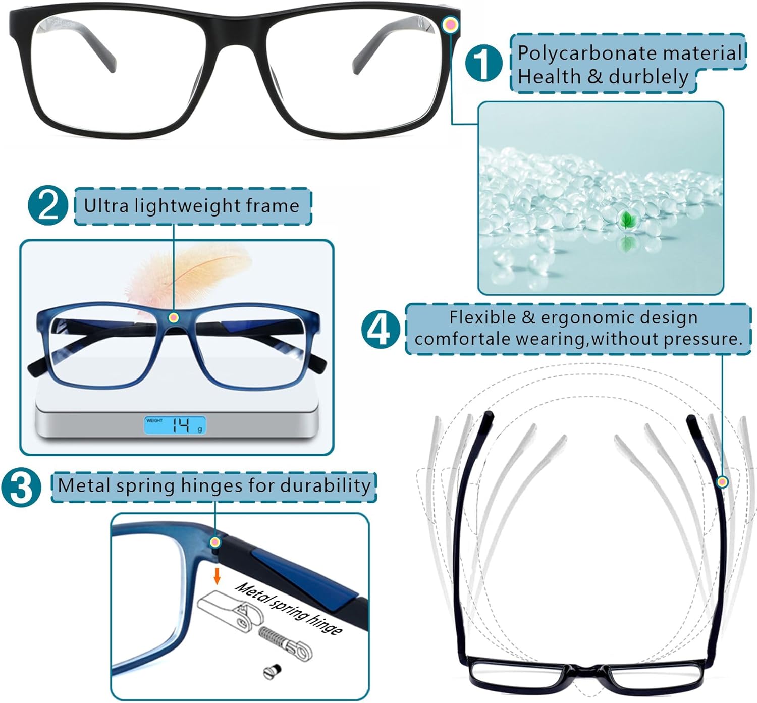Bifocal Reading Glasses for Men,Progressive Multifocus Readers Eyeglasses