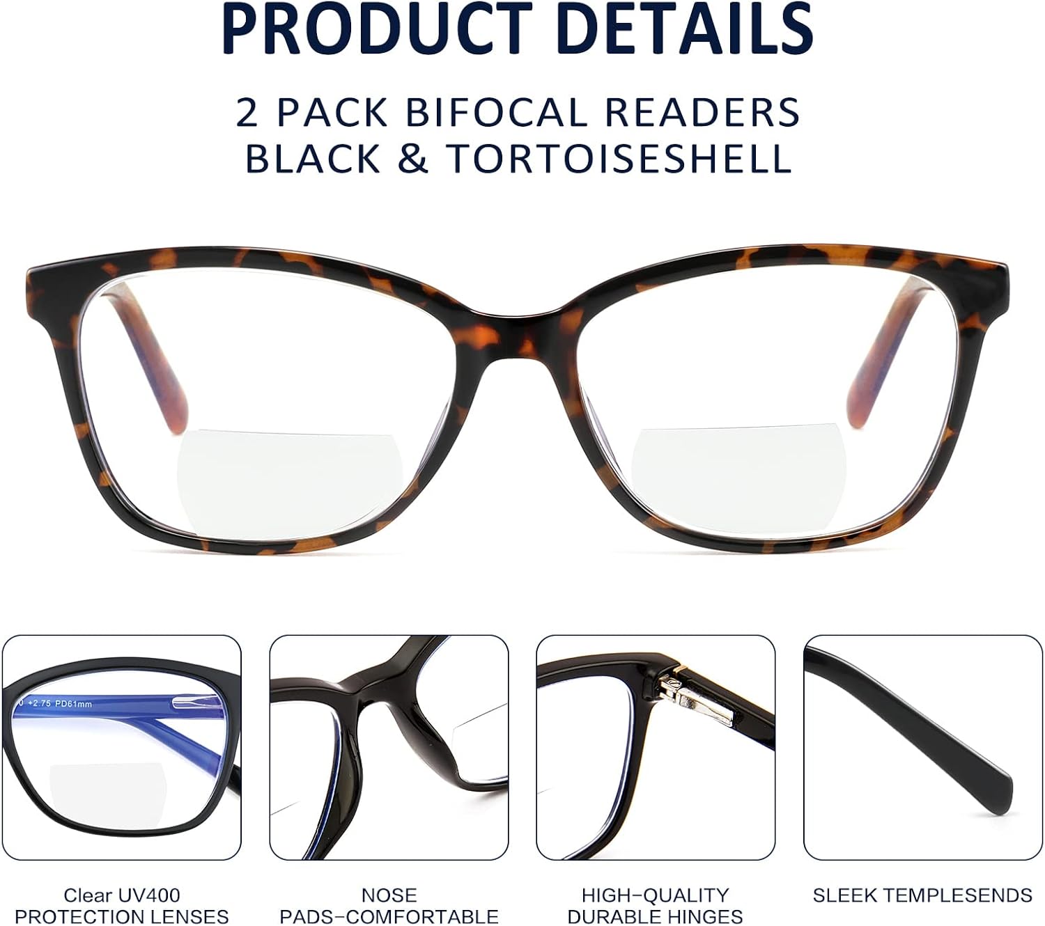 Review: I really like these glasses, they fit really well. I just had cataract surgery and needed a bifocal with a clear top. These work well. I tried the transition type readers but they just did not work, as the transition part was to strong. The lenses are very clear on top, and the glasses are well made. It takes some getting used to the line of the bifocal, but after a day or two, it didn’t bother me at all. The lenses are nice size, making the clear part better. The spring loaded hinges seem pretty well made. I definitely will buy them again. Good solid pair of glasses.