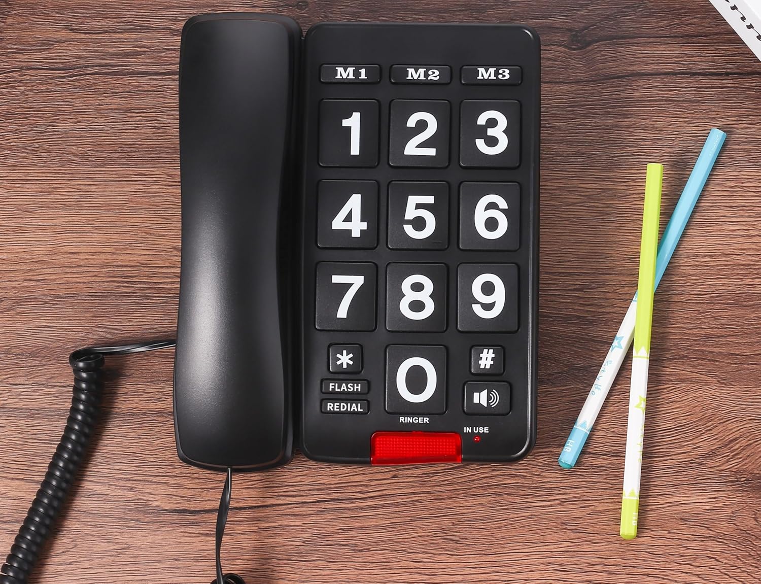 LANDLINE PHONE WITH EXTRA LARGE BUTTONS – high contrast and large size numbers are great for people with low vision, hard hearing or dementia. It’s a great gift for mother, father or grandparent.