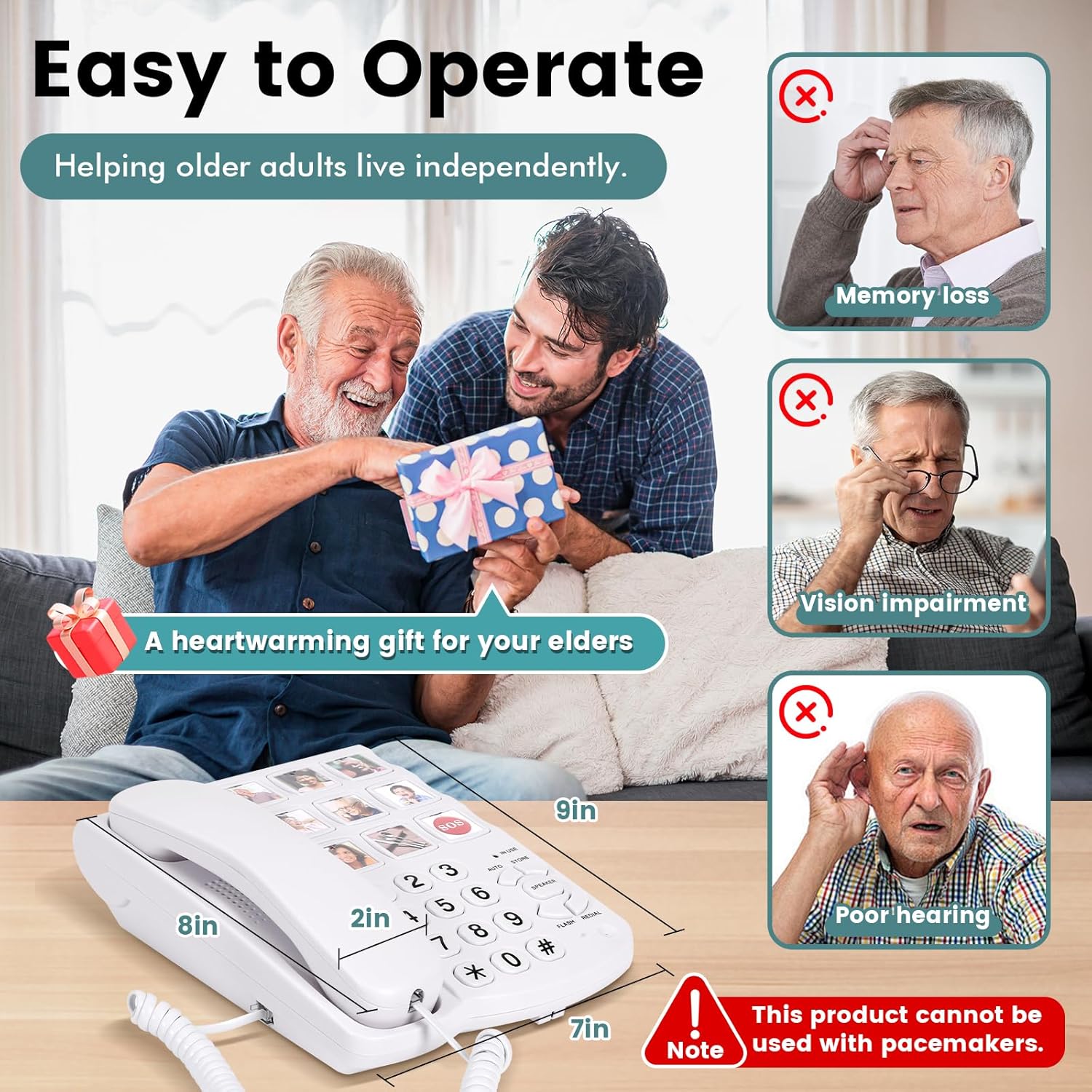 Review: My senior parents needed a reliable landline phone since their cordless ones were starting to have battery problems. This phone has been the perfect replacement. The large buttons are easy for them to use and the photo speed dial makes calling simple. They just press the picture and it dials automatically.Setup was quick and easy. It plugs directly into the phone line with no batteries required. The adjustable volume and flashing light are very helpful for seniors with hearing issues, and the SOS button gives me peace of mind knowing they can reach help quickly.This phone is basic but effective. It does exactly what it should and keeps things simple for everyday use. Highly recommended for seniors who need an easy to use landline.