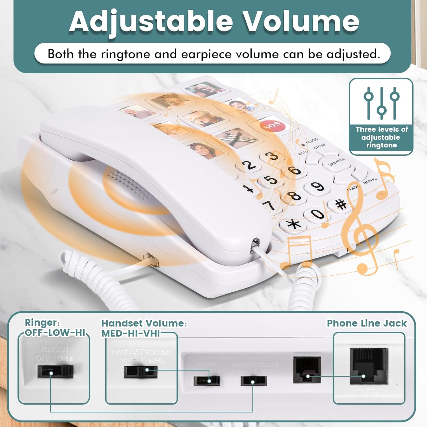 Review: My senior parents needed a reliable landline phone since their cordless ones were starting to have battery problems. This phone has been the perfect replacement. The large buttons are easy for them to use and the photo speed dial makes calling simple. They just press the picture and it dials automatically.Setup was quick and easy. It plugs directly into the phone line with no batteries required. The adjustable volume and flashing light are very helpful for seniors with hearing issues, and the SOS button gives me peace of mind knowing they can reach help quickly.This phone is basic but effective. It does exactly what it should and keeps things simple for everyday use. Highly recommended for seniors who need an easy to use landline.
