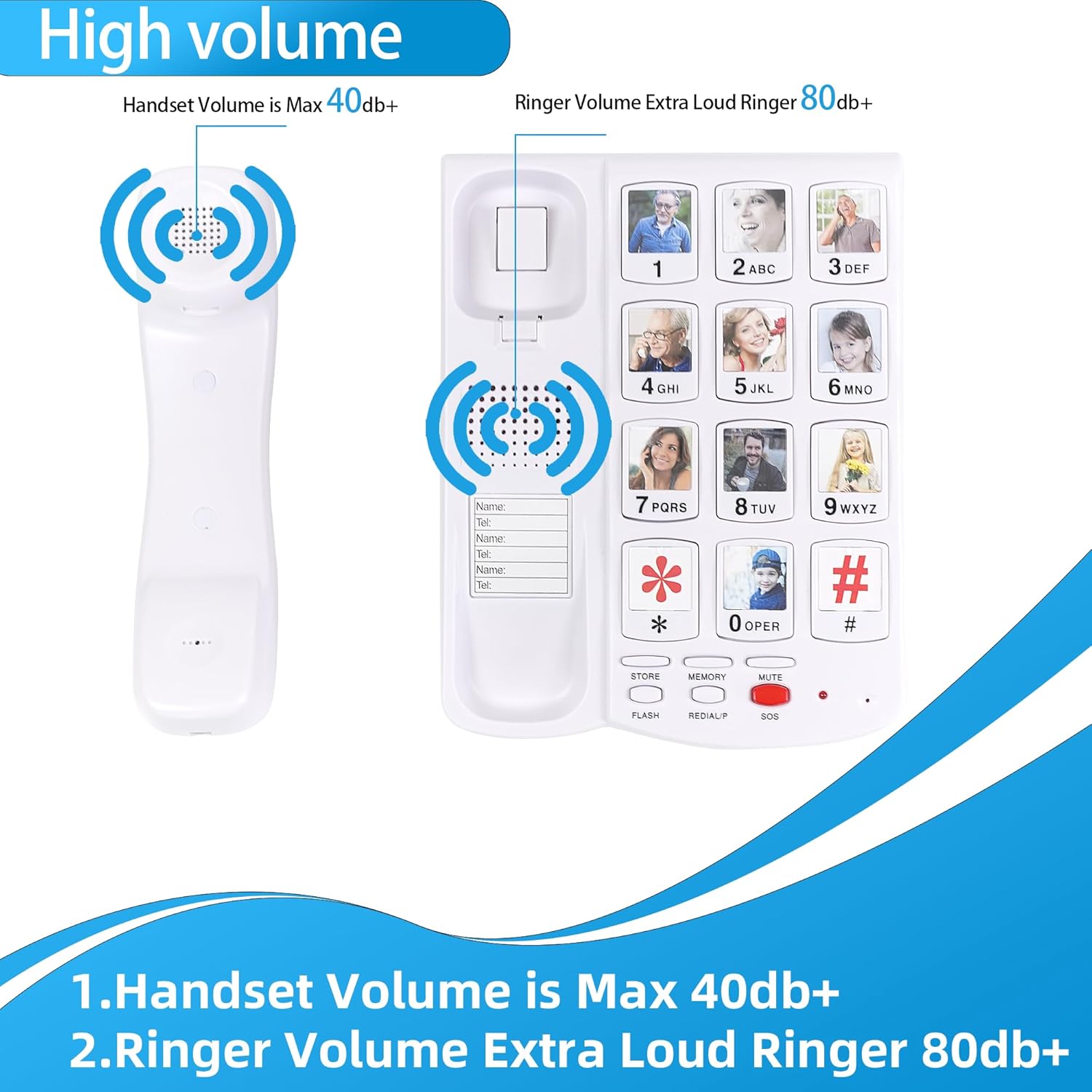 Review: This user-friendly phone is designed especially for adults with hearing difficulties. It features large, clearly labeled buttons for easy reading and dialing. The phone includes photo buttons, allowing users to dial frequently called contacts with a single press—just match the face to the button.The speaker volume has three adjustable levels and gets loud enough to be clearly heard. The ringer is also loud and easily recognizable, ensuring no call is missed. An SOS button provides one-touch emergency dialing, giving peace of mind for both users and their loved ones.My parents kept this phone by their bedside and especially appreciated the simplicity and reliability of the SOS one-touch feature.