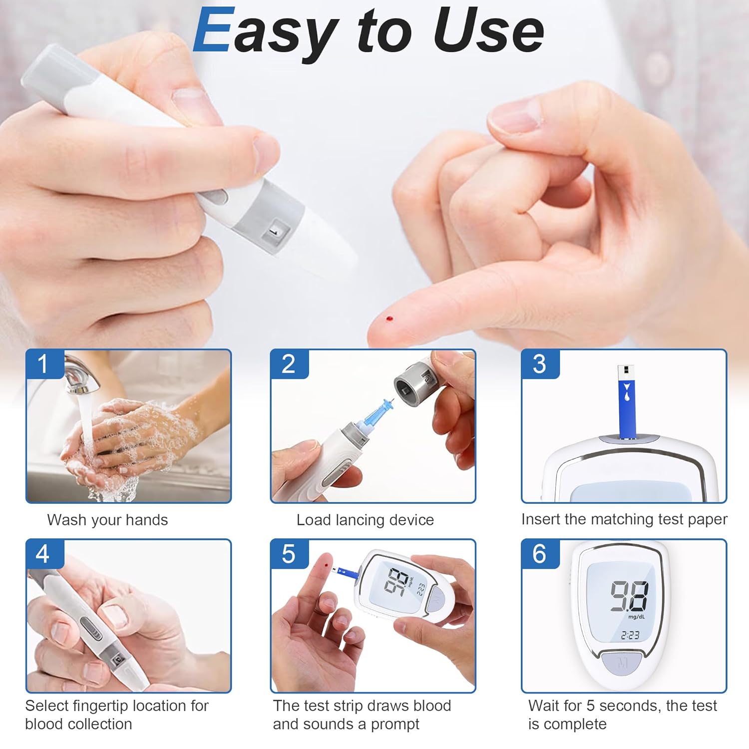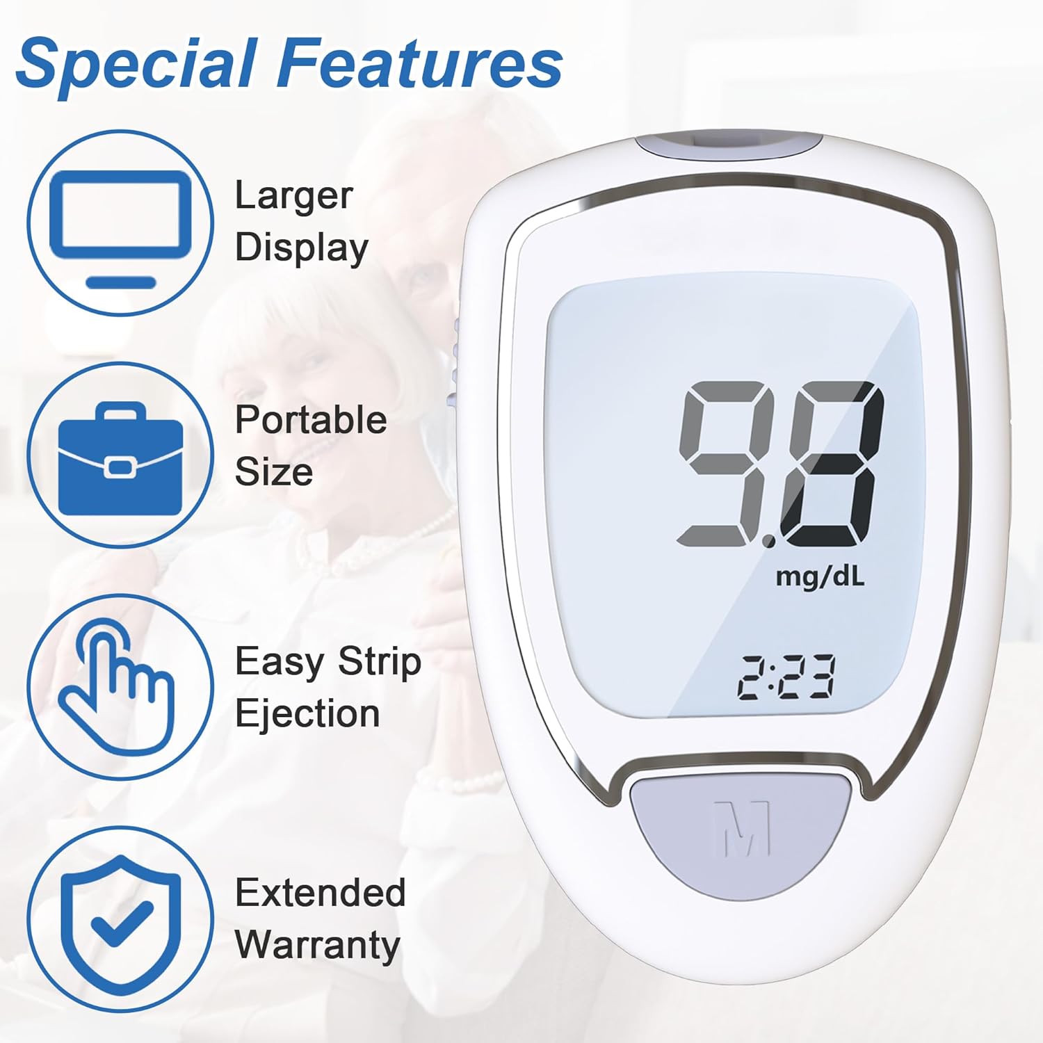 Review: This blood sugar testing kit is very accurate and easy to use. I like that it comes with everything needed — 100 test strips, 100 lancets, and the lancing device, so you’re set for a while. The monitor gives quick results and doesn’t require any coding, which makes testing simple and stress-free. It’s also compact and portable, so I can take it with me when I’m out. Overall, it’s a reliable and affordable option for managing blood sugar at home.