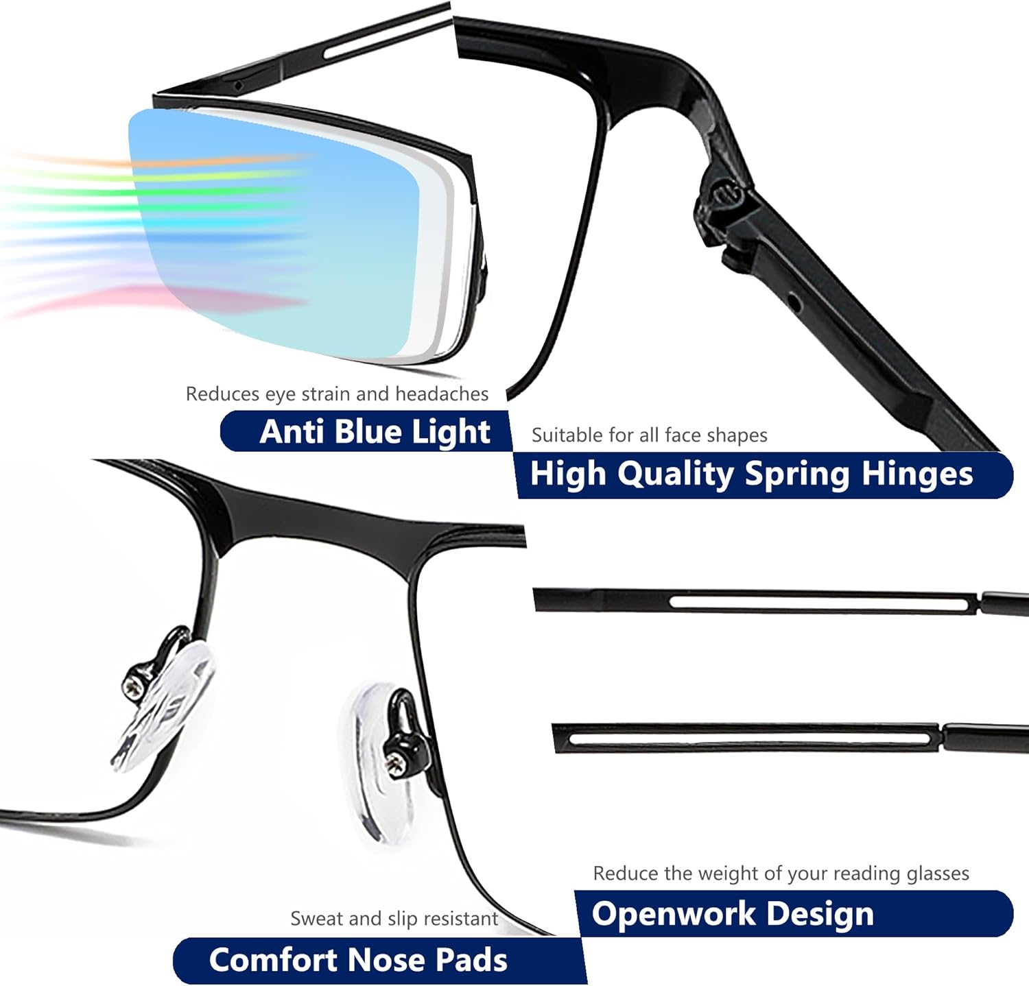 , Health & Household > Vision > Reading Glasses, #Blue #Light #Blocking #Reading #Glasses #Men #Spring #Hinge #Metal #Full #Frame #L..,