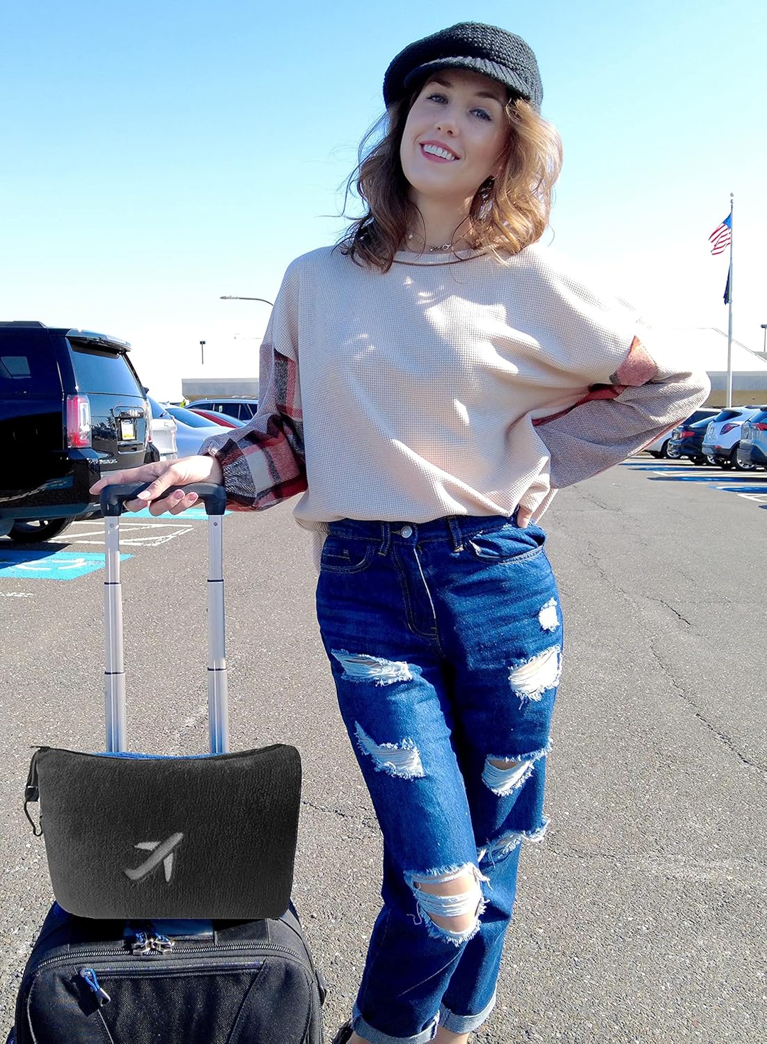 Soft Case with Hand Luggage Belt Strap & Backpack Clip- Great gift for Travelers: Quickly and easily attach this compact plane blanket pillow to your work bag, backpack, suitcase, or more for effortless transportation in places such as an airport terminal. This is also a great travel gift to give anyone.