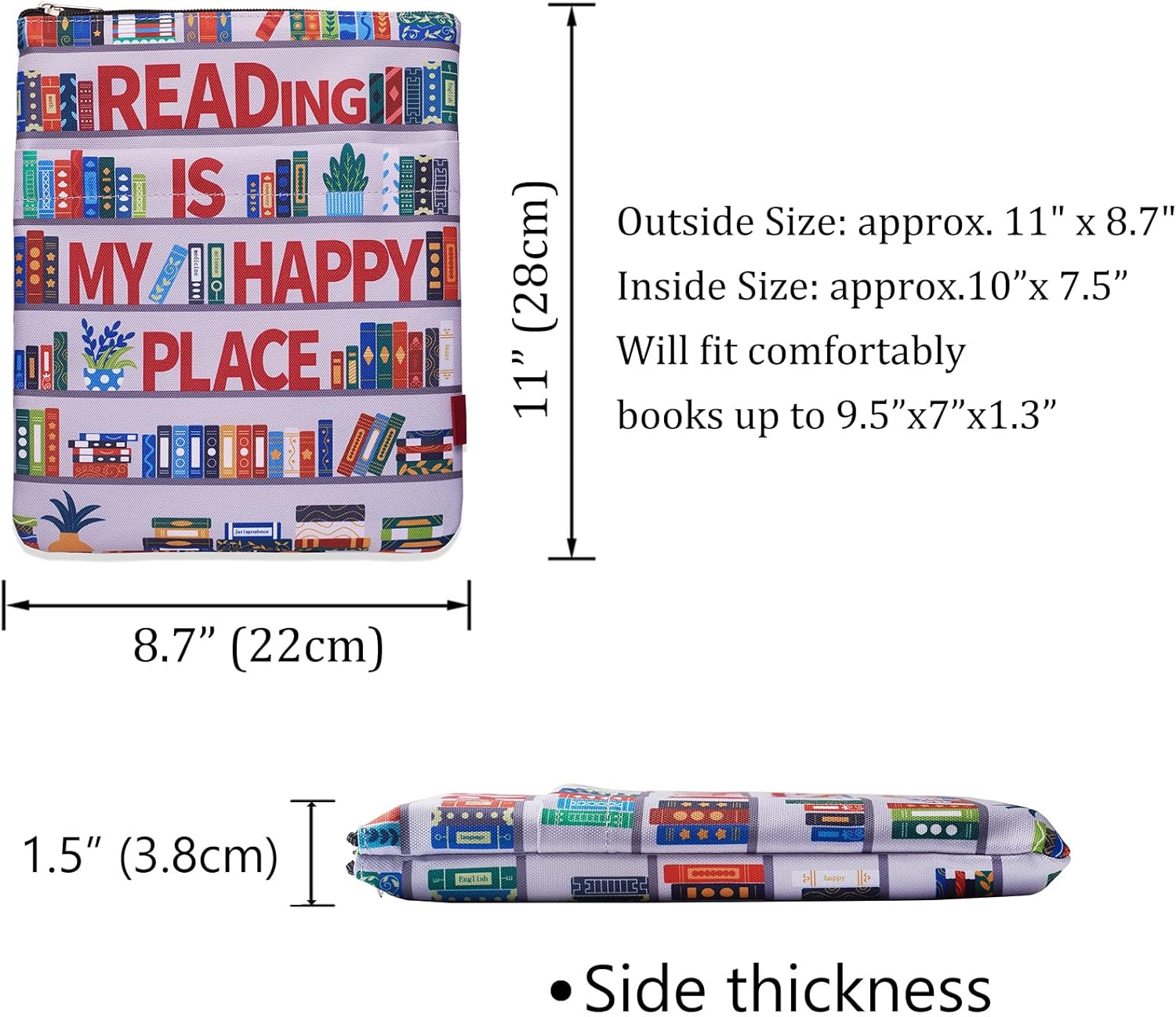 B0BVDW9JLZ, Product Name:Classic Bookcase Book Sleeve Cover, Book Protector with Zipper for Paperbacks, Medium 11 X 8.5 Inch,Book Pouch Book Lovers Gift