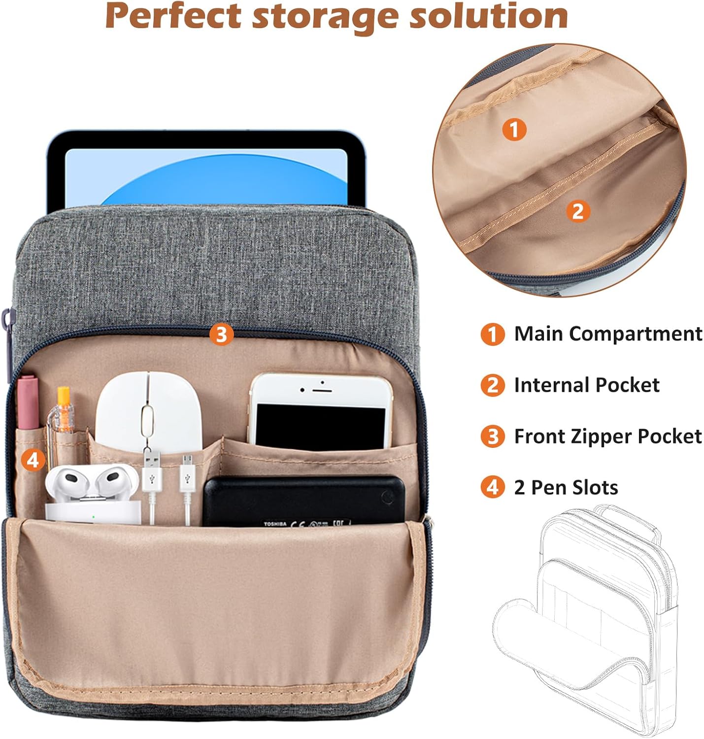 Review: High School son has an iPad for school. He carries the iPad in his school backpack most days, however, if he is just taking his iPad somewhere (say, on the weekend), he uses this. It has a front pouch for supplies. Perfect fit!!!You can likely fit a paperback book in with the iPad or notecards if needed.