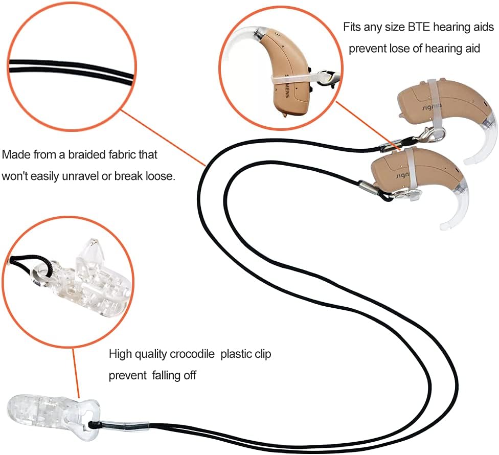 Review: Works well to keep from losing the hearing aids. But the little clasp to hook on your clothes, wears out and breaks too early.