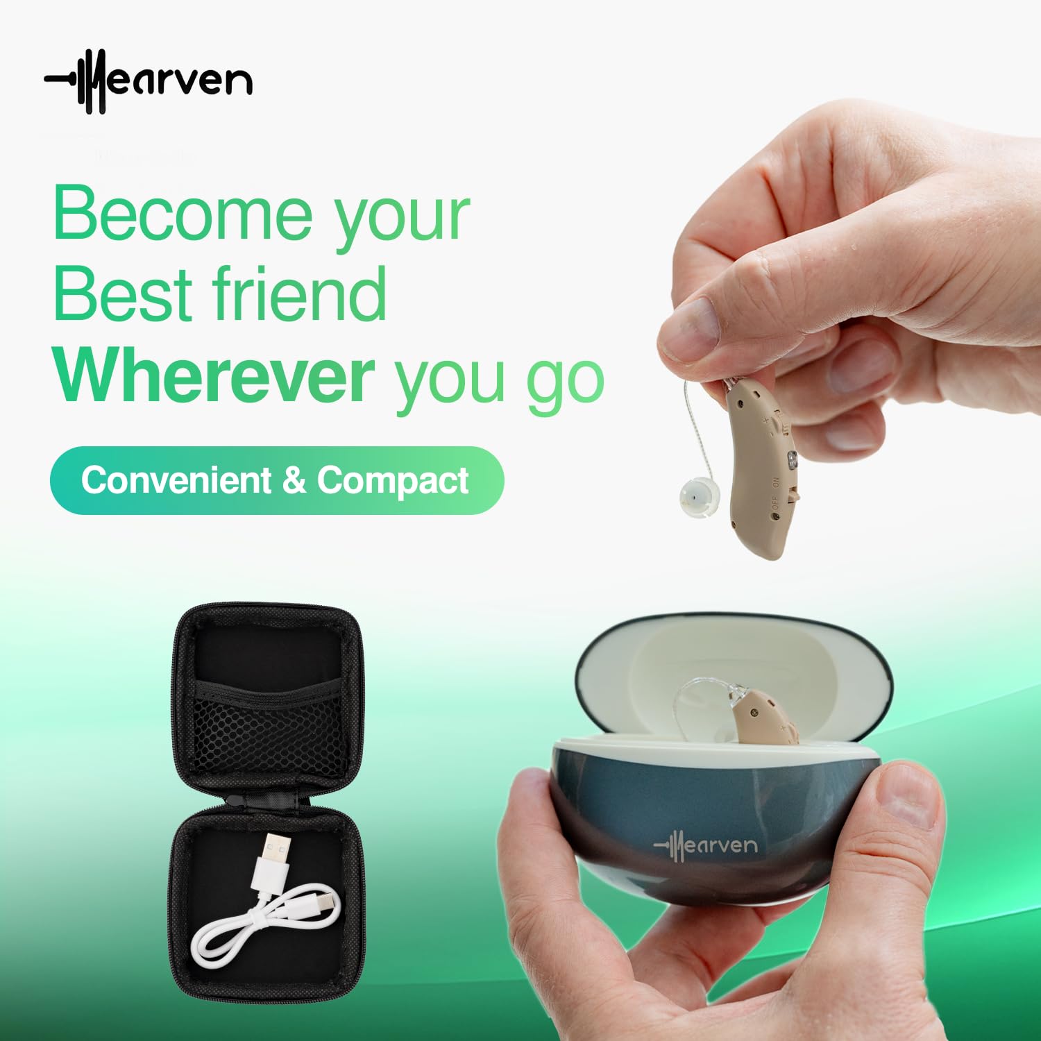 Hearven delivers top quality at an affordable price. With us, you’re investing in not just a hearing aid, but a brighter, joyful future