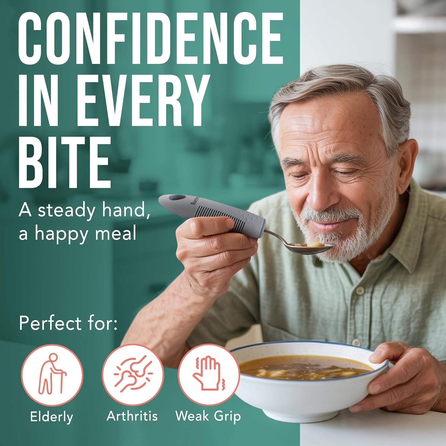 Review: I purchased this for my father, who has Alzheimer’s and struggles with hand tremors. The product is well-made and has a good size, which helps him maintain better control while eating. It’s made a noticeable difference in his daily routine. Highly recommend for others in similar situations.