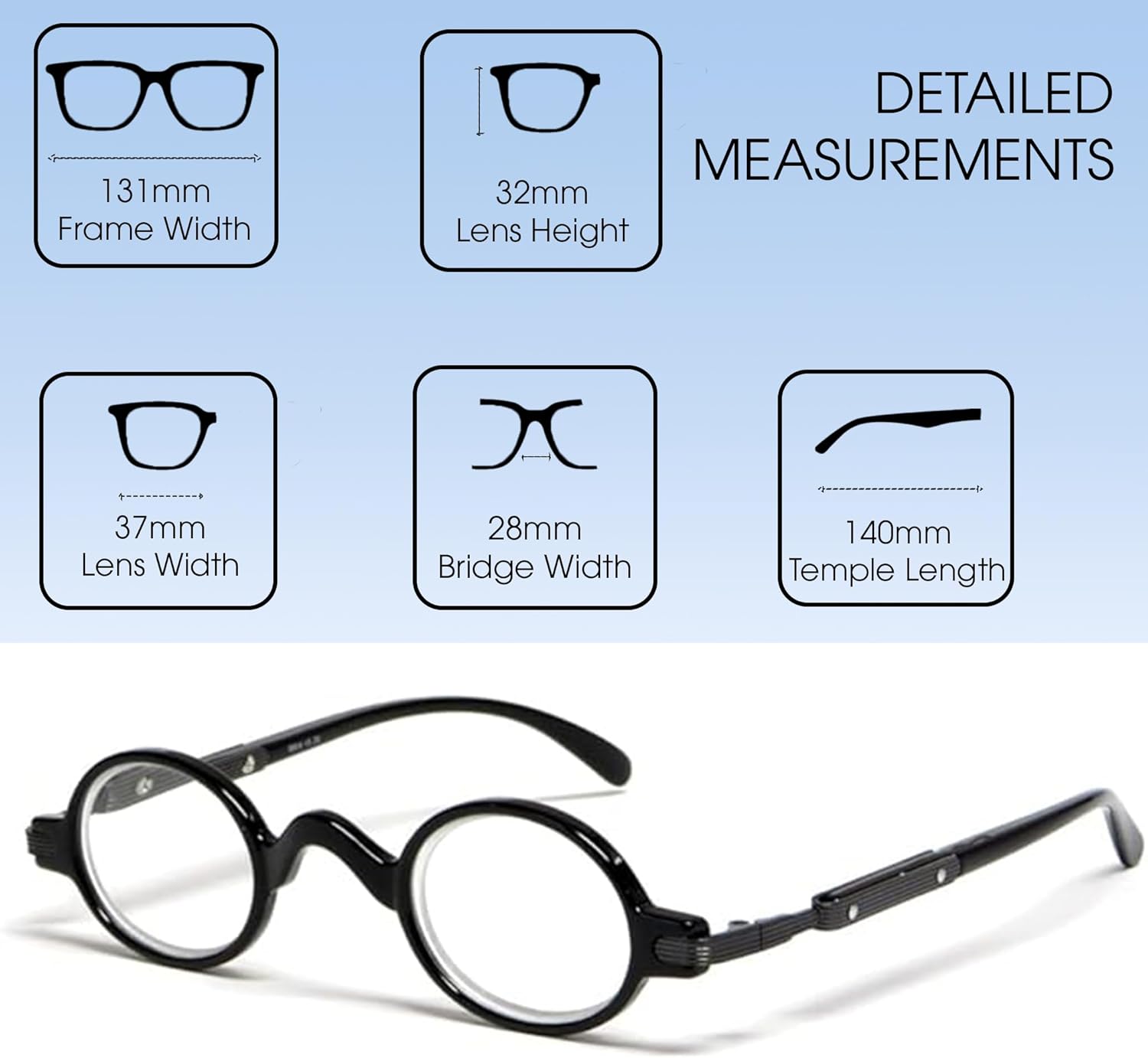 Review: Round readers, arrived safely. They are a bit nerdy but I like them. The quality is impressive for the price and the glass is clear, and better than expected. I purchased a higher power to rest my eyes from contacts during the day, I’m very happy I found them.
