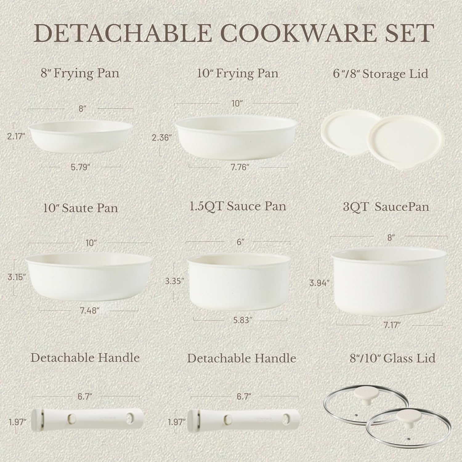 · Multitaskig Cookware Set: Removable handle for the ultimate versatility– go from ALL kinds of stoves to the oven, to the grill, to the fridge, and onto the table in a click. The handle is upgraded for secure when attached during cooking.