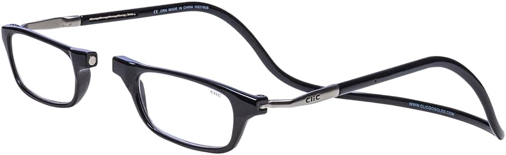 Review: I first saw these glasses about a year ago and finally got around to ordering a pair. I am tired of my glasses falling off my head, my shirt, etc. I don’t like wearing readers, but now I have to. As soon as I put them on I want to take them off. Then, when I need glasses I can’t remember where I left them. Clic’s has resolved all these problems for me. I actually put them on after dressing in the morning. When I don’t need them they just rest around my neck. I always know where they are and they never fall off. My only problem is that when I reach for them I sometimes smug the lenses. I’m training myself no to do this. They are study, but not too heavy … and the lenses are nice and clear. They are comfortable and I wear them every single day … and, neither of the lenses has popped out. I will be ordering the sunglasses next.