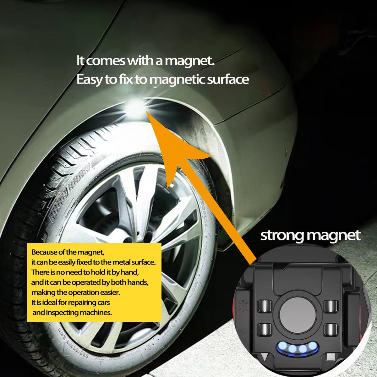 💡【Magnetic COB Work Light】- The cob work light has a strong magnetic attraction on the back, which can be easily attached to any metal surface. 180-degree adjustable stand allows you to place the cob light at different angles according to actual needs. The carabiner design allows you to hang the cob light. Help you free your hands and make your work more convenient.
