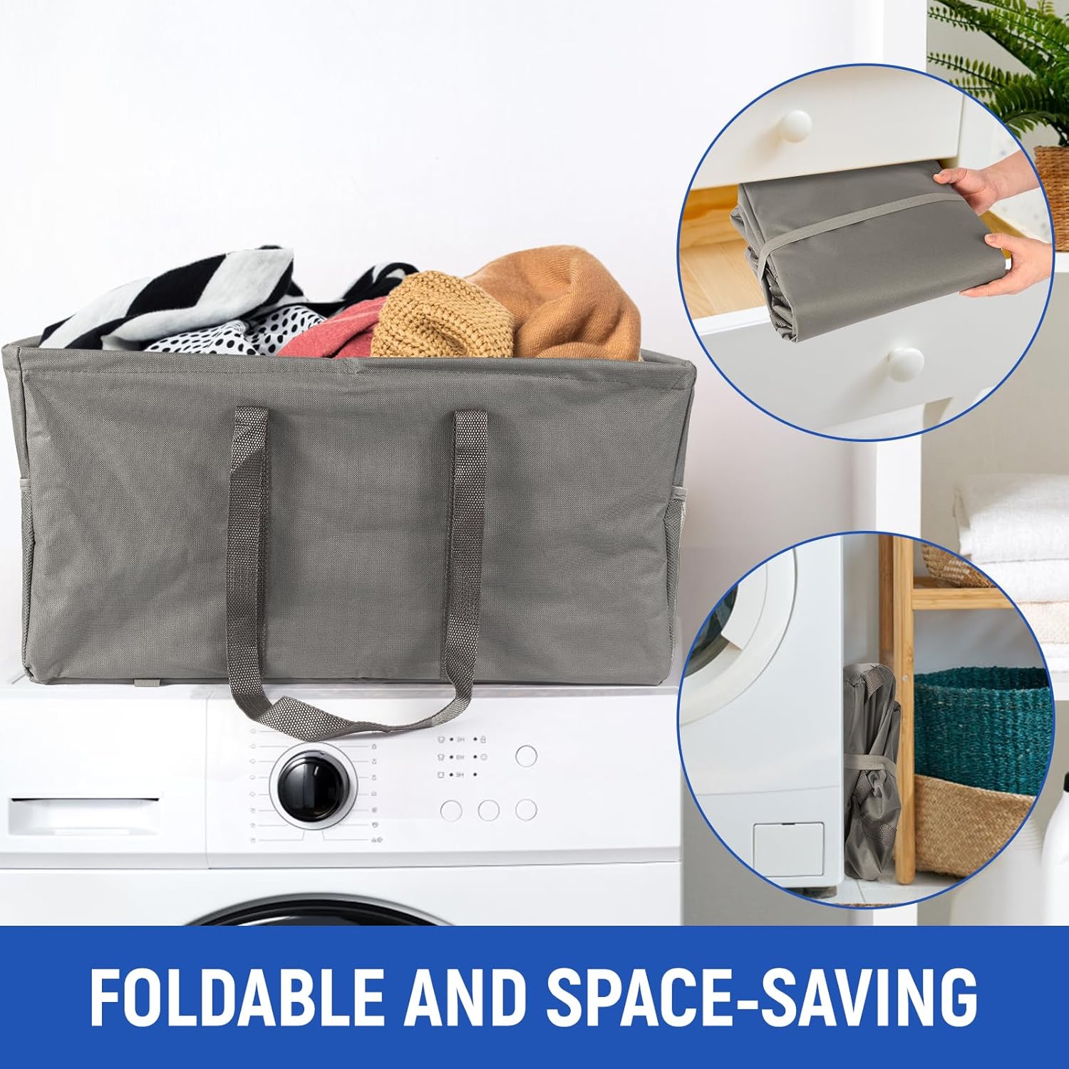 This foldable grocery tote bag basket is a versatile solution for effortlessly store anything, it can help you toting dirty laundry and organizing your freshly folded clothes neatly after the dryer.