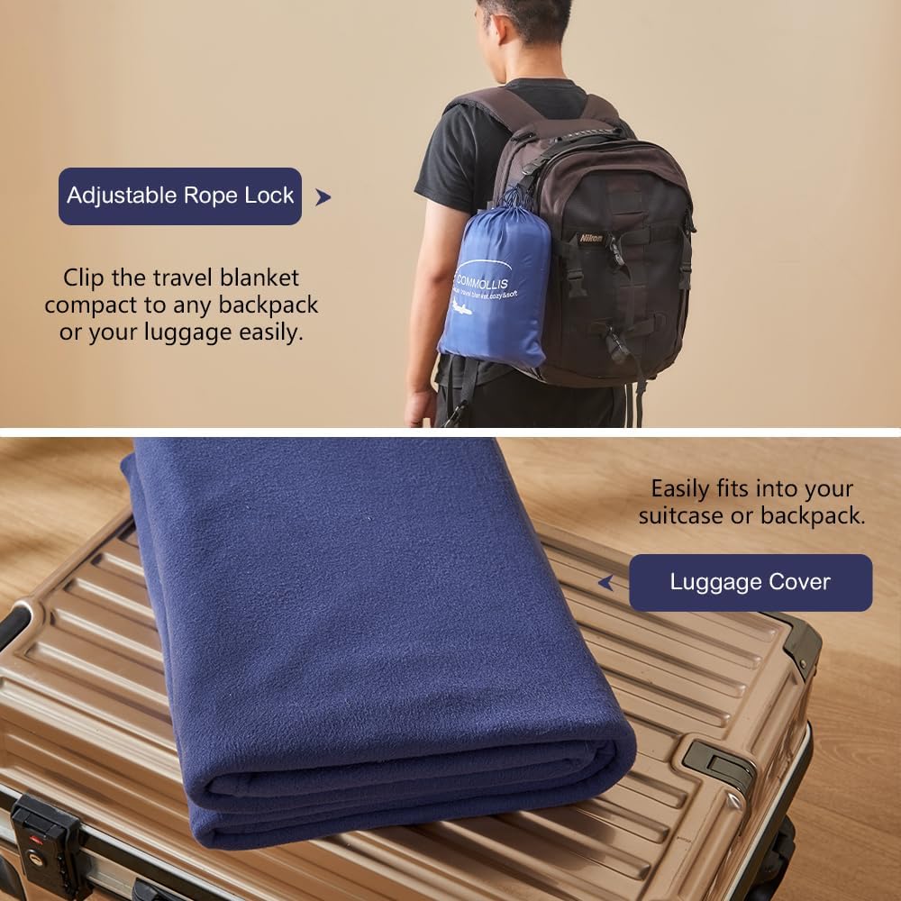 Certified Safety & Ultra-Plush Comfort:Crafted with aviation-grade flame-retardant fabric (FAA compliant), this travel blanket prioritizes safety without compromising luxury. The 100% microfiber polyester mimics cashmere-like softness, wrapping you in a velvety cocoon of warmth even in harsh airplane AC or chilly campsites. Perfect for sensitive skin and restless sleepers!