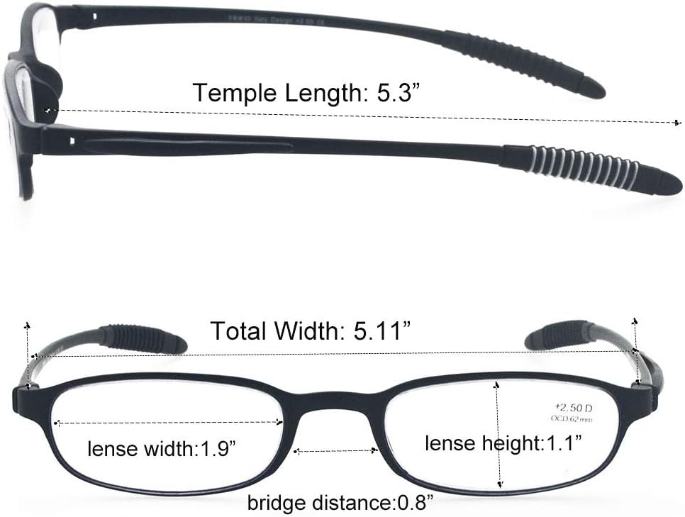 Review: These reading glasses are not the most fashionable, but they get the job done- was looking for a pair of glasses that were pretty indestructible. I keep my reading glasses on the top of my head when not reading during the day, and that will destroy the earpieces on most glasses very quickly. These flexible earpieces have held up very well. They also are easy to manipulate so that they stay on top of my head securely without slipping off.