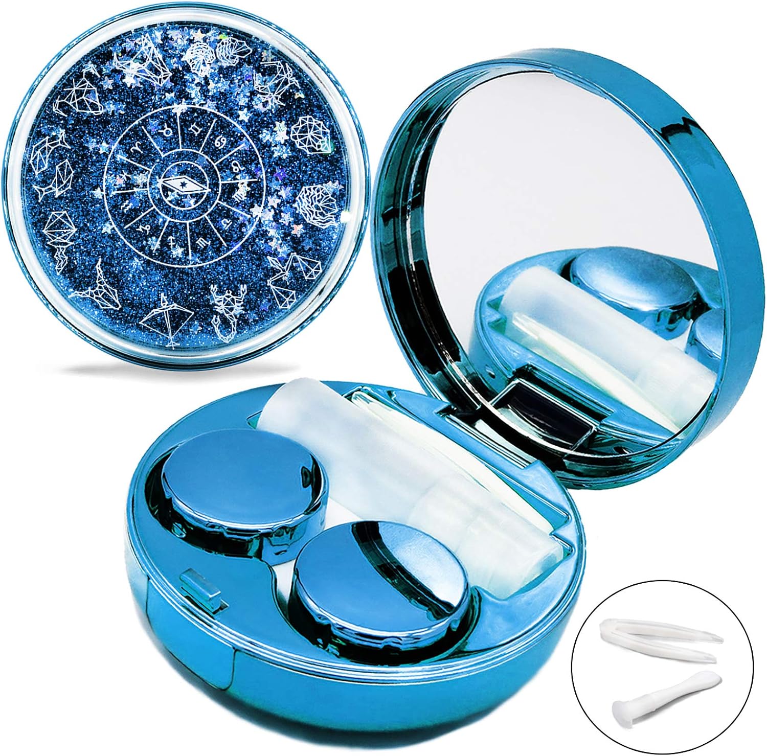 Bling Glitter Blue Leakproof Pocket Colorful Contact Lens Case Tool for Applying and Removing Contacts
