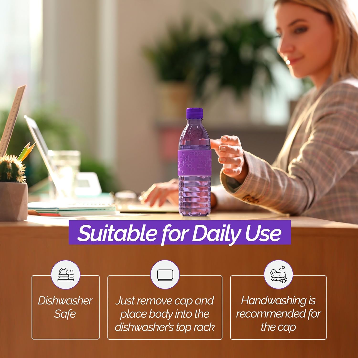 Ergonomic Design: The Tritan water bottle features a spill-resistant lid and a textured, non-slip sleeve for added convenience, making it comfortable to hold and drink from throughout the day.