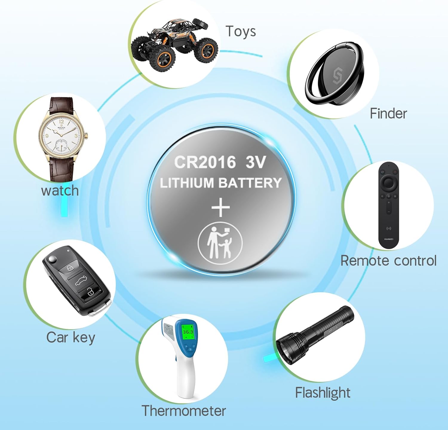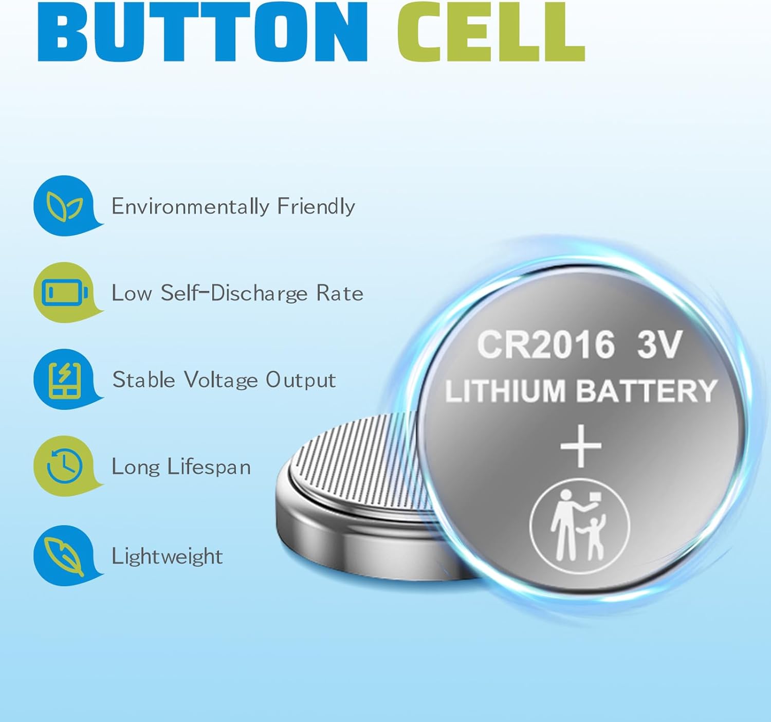 Leak-Resistant Construction: CR2016 batteries built with a leak-resistant casing to ensure your devices are protected against potential damage.