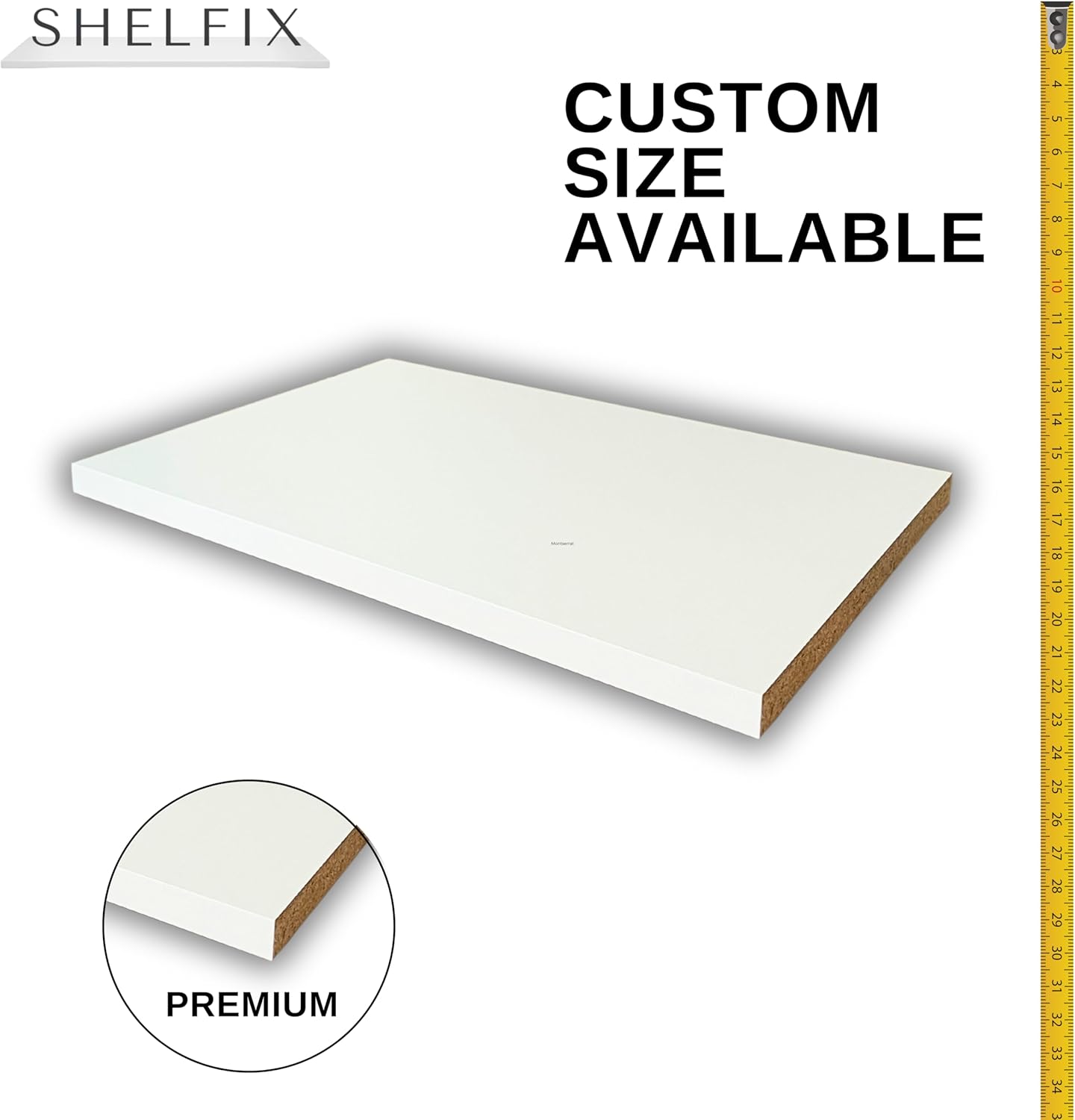 Review: I ordered this custom shelf back in October, 2024 to lengthen the shelf space in my apartment’s pantry. It was missing a shelf on the bottom and the apartment complex is too cheap to do anything that isn’t “necessary”. To describe the space, the pantry is like a closet but with no “walk-in” space, just sets of shelves stacked and spaced apart vertically. It has two shelves laid out horizontally (back then front) and not one big one so it can actually be put in/taken out to make a overall deep shelving area.Anyway, the size I ordered was 27 1/4″ W x 16″ L, which arrived pretty quick from what I remember, and well-packed. It was a little hard to fit in the pantry because of how exact the measurements I took were. I also opted for a longer length for more storage since it was for the bottom-most shelf, they didn’t extend all the way on the higher shelves, which is fine since my arms can’t reach that far past the 3rd shelf.So far, this shelf has withstood any kind of wear and tear I could throw at it, which is basically just some food, a pan, and lunchbags being placed and taken off multiple times. It honestly looks so much better than the original shelves by a mile. Helps that it’s not painted an ugly taupe with several layers of paint over it (not me ratting out the cheap painters who “repaint” or blast everything with paint everytime a tenant moves out lol). I think I only paid a little over $54 for it, which was reasonable for the size and quality of the board. If anything, I’d improve the description to make it easier to understand which options means what (I believe I got confused on the facing/siding part, aka which side is facing out to get painted, when I made my order months ago). I definitely recommend SHELFIX for your custom shelving needs if you can’t make yourself (or someone you know) a shelf.