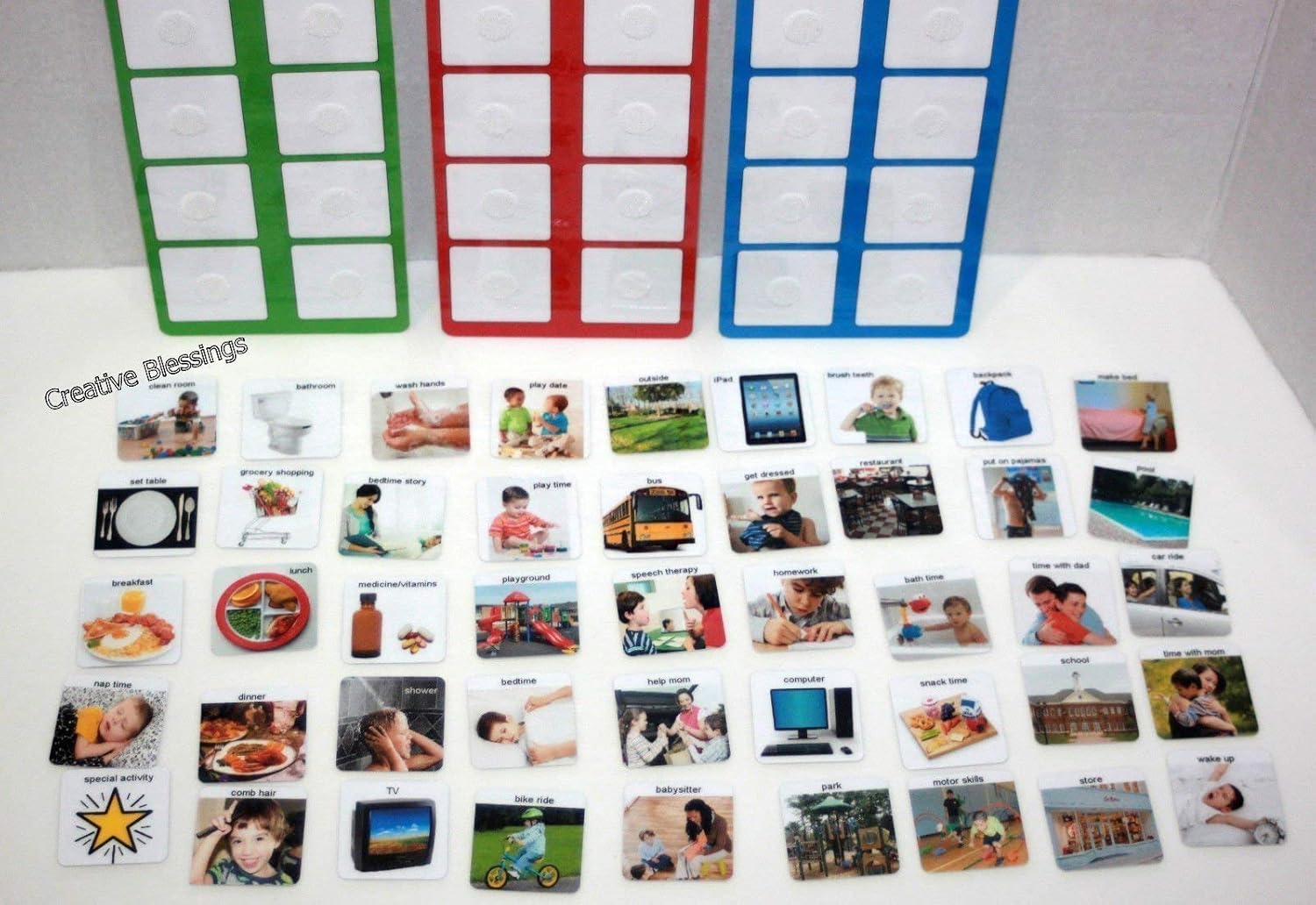 B077525682, 😀PCS VISUAL SCHEDULE DESCRIPTION: 🧩Includes 45 colorful “Real” Picture Cards with 3 Charts (Morning, Afternoon, and Evening). 🧩Each picture measures 1.5 x 1.5 printed on White 110 lb Card Stock. 🧩Each board measures approximately 10.7″ tall and 3.75″ wide. 🧩Each picture is heat laminated to protect the picture and make more sturdy. 🧩Each picture comes mounted with 1/2″ round Loop Velcro on the back. 🧩Each picture corner has been rounded to prevent the child from “poking” themselves or others. 🧩Each picture has been individually handmade and cut out by hand to…, , , Toys & Games > Learning & Education, #Daily #Visual #PCS #Picture #Schedule #Charts #Colorful #Real #Picture #Cards #fo..,