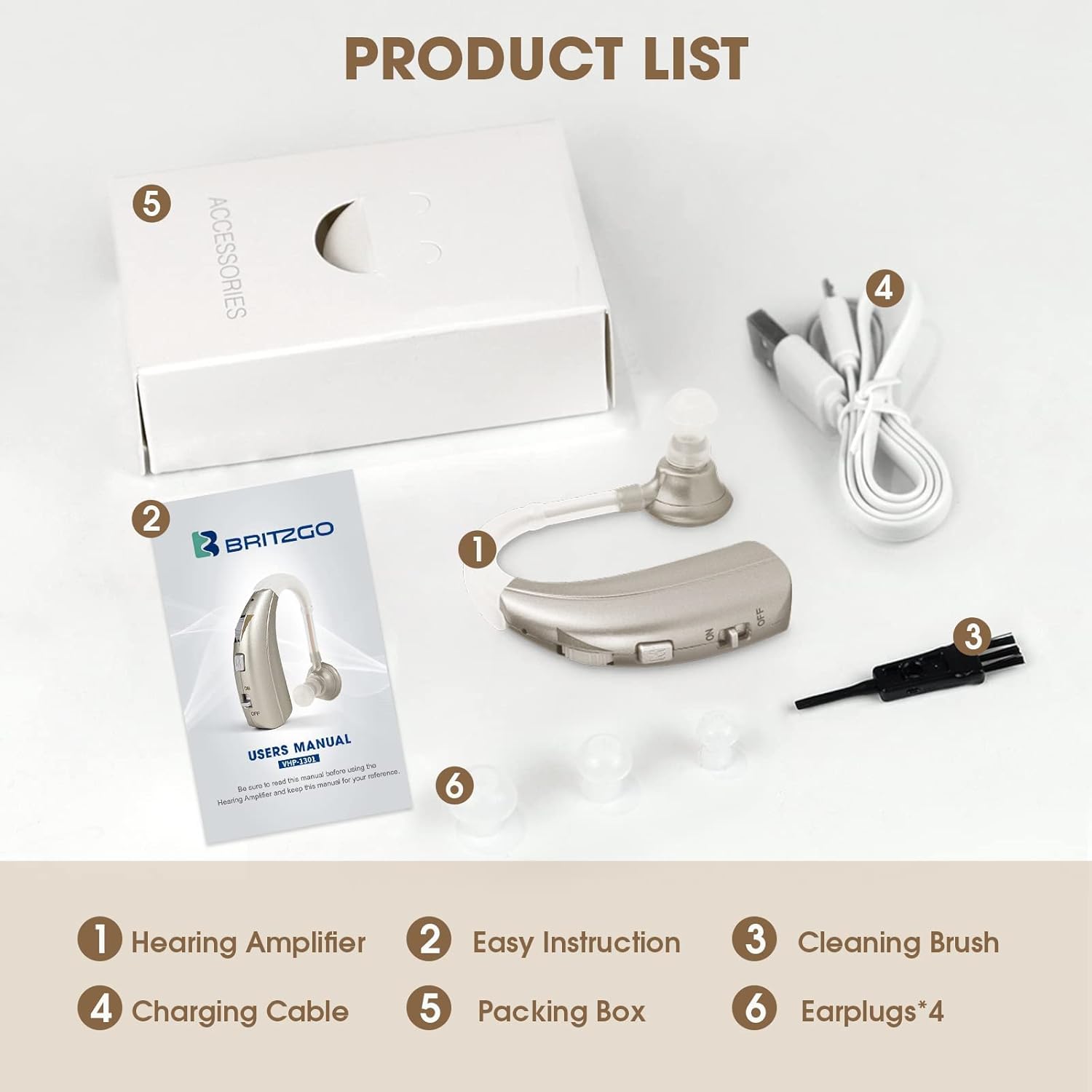 Review: Update: I have had three pairs of these Hearing Amplifiers, plus a few replacements. While they work great for a while and help someone like me with high hearing loss, unfortunately, none of mine lasted longer than 7 to 8 months. At least for me, that’s been the average longevity of each pair I’ve had, they die when they reach eight-month of age. Now, this goes without saying, that I cleaned them faithfully, every day, used HALHEN SUPER DRI-AIR to store them at nighttime, and always kept them safe and dry. No showers!I’m not even getting in touch with Britzgo anymore, it happens so often, that to ask for a refund or replacement, they might think I am lying. The pair I just bought several months ago, just died this week. If only they could last the full one year for me! Other than that, they are good aids while they last.Worth the money! They work just as well or almost as well as my $3500 pair. Who can afford hearing aids anymore, healthcare should cover them. Anyhow, I am buying another pair as backup.UPDATE: These are not as good as my $3500 pair. I was wrong!! These hardly work properly now, being they barely pick up any sound at all. I can’t hear anything from them. Even replacing batteries and keeping them clean, the capability has reduced sharply!! I wish it wasn’t so. Maybe someone with a low loss of hearing could use them, but I have profound hearing and these just don’t amplify the sound like they did when they were new, Not worth the price when I bought these only in MAY