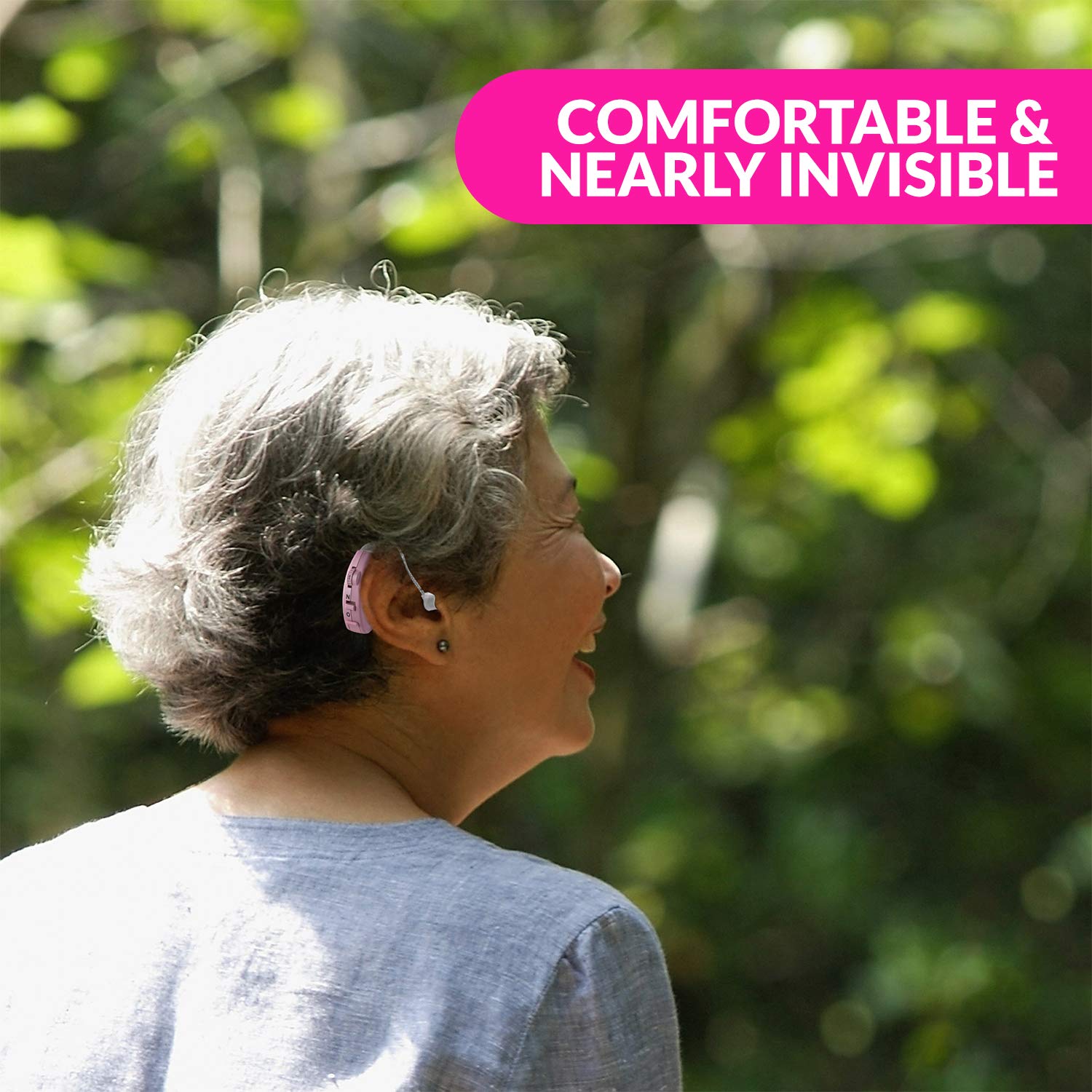 Review: Over all this hearing amplifier works pretty well. Especially for the price. There’s a little bit of a whirring sound in the background but it’s not too noticeable I get used to it pretty quick. I use these for work. I work with teenagers in a classroom setting and they work pretty well before I was having a hard time hearing my students at a regular speaking level. I’ve been gradually losing my hearing for the past 20 years after numerous eardrum ruptures due to fluid buildup in my ears from acutely angled eustachian tubes, the fluid doesn’t drain properly. My insurance is so finicky I can’t get proper hearing aids but I’ve had surgery on my ears after TWO bouts of the very rare mastoiditus, one which landed me in serious condition because of the infection nearly spreading to my spinal column. Sometimes I need the left one to at the highest setting but overall I am very pleased. Obviously it’s not a proper hearing aid like my mother has (same issue because we have the same skull structure and tube angle) but they work great to get me through the work day. That’s what matters.
