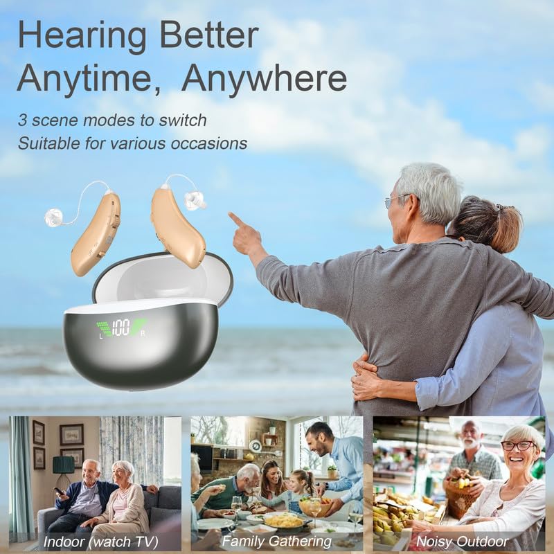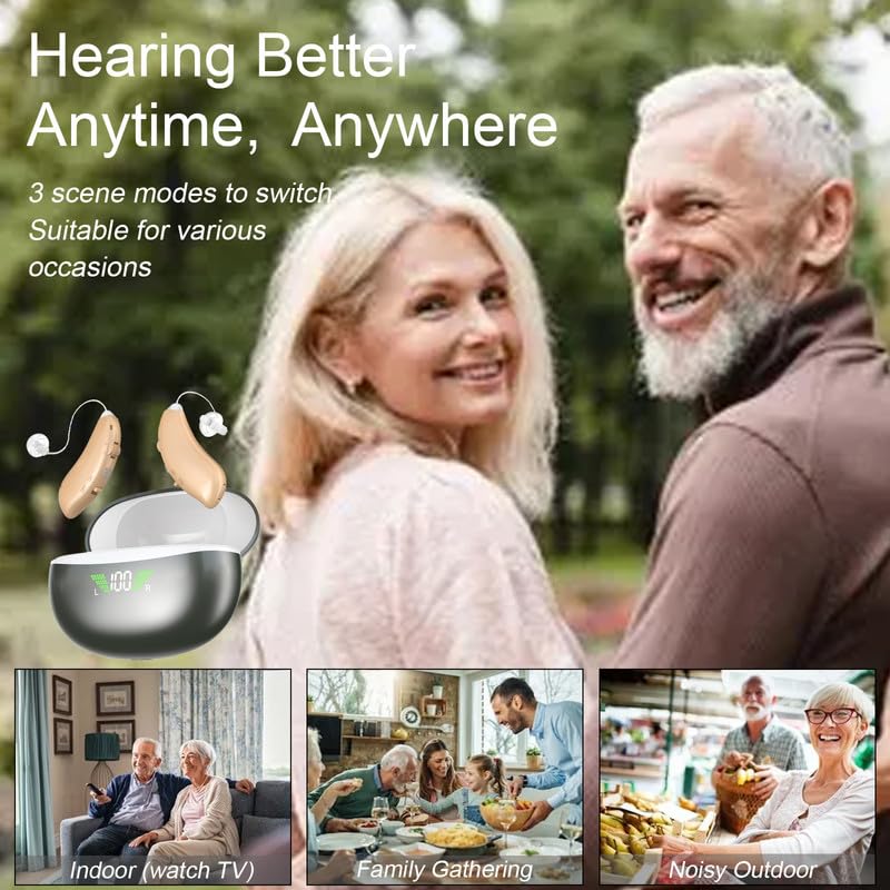 Review: My aunt is 96 years old and needed new hearing aids that were simple to use. She has tried other hearing aids in the past and was not successful. These hearing aids are easy for her to use and she is able to actively participate in conversations and watch her TV using a lower volume. The on and off bottom works perfect for her as well as the volume control and it is very easy to charge