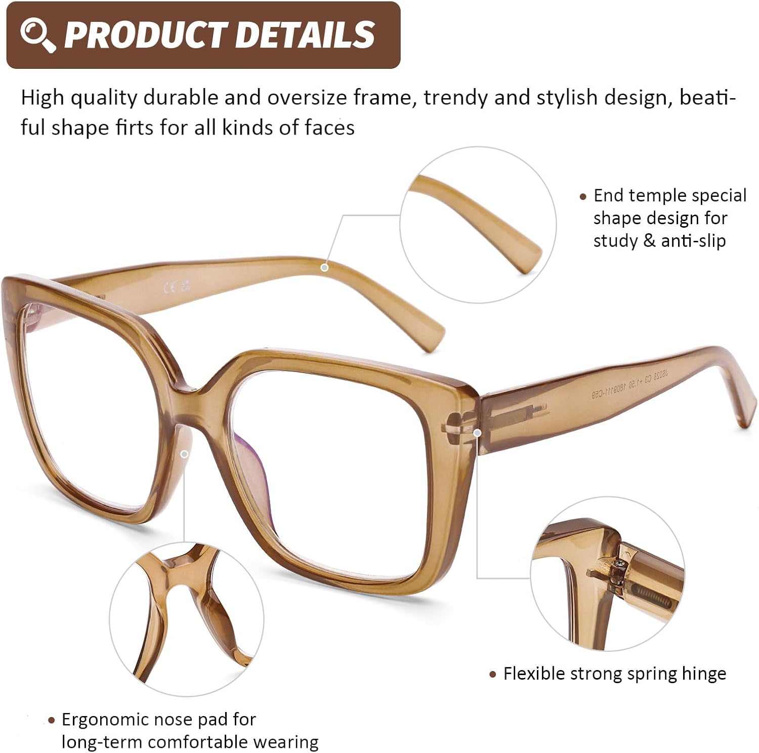 , Health & Household > Vision > Reading Glasses, #DOOViC #Pack #Oversized #Reading #Glasses #Women #Blue #Light #Blocking #Square #Sty..,