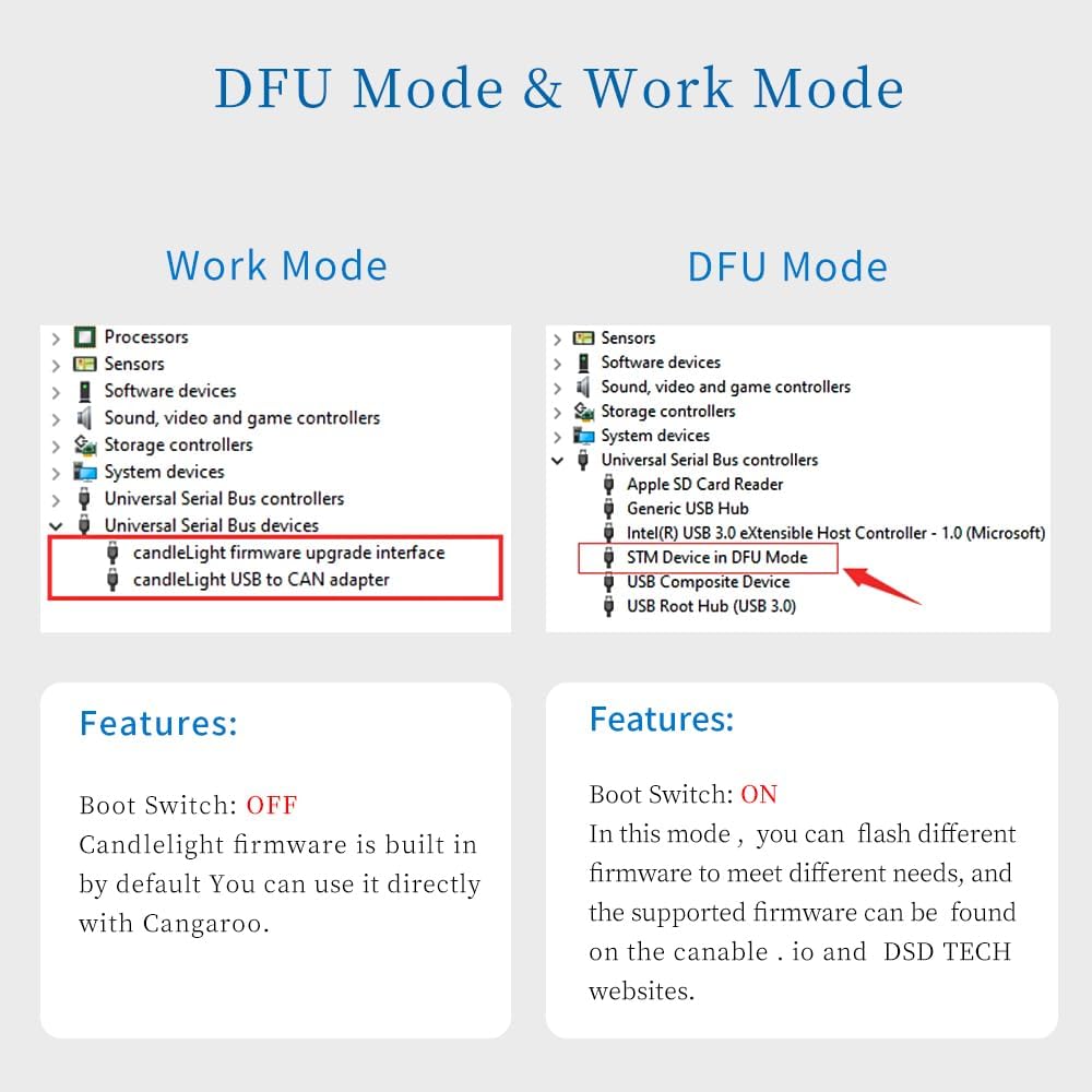 Open Source Hardware Plan: SH-C31A is derived from the open source hardware project Canable 2.0. As a good quality hardware manufacturer, DSD TECH hopes to make some contributions to the development of open source hardware. All documentation of this product (schematics, BOM lists, Gerb files) is publicly available on the DSD TECH website.