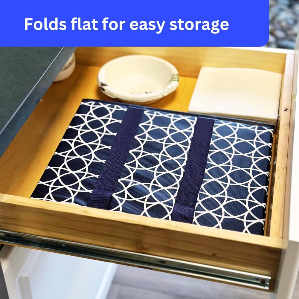 This set of 3 Collapsible Storage Totes is a 2-in-1 organization and carry-all dream combo that can’t be missed. Made of a laminated polypropylene that is moisture resistant & durable enough to hold up to 200 lbs. of dry material. Doubling as a reusable tote bag and a collapsible storage container, it is a perfect solution for those shopping sprees and home organization projects. Engineered with a bottom flap to easily collapse the totes when not in use. Four handles for multiple carry options. Reusable-just wipe or rinse clean. Capacity: 6 Gallons / 200 lbs. Weighs about 1lb when empty and measures approximately 13x11x9.5 inches.