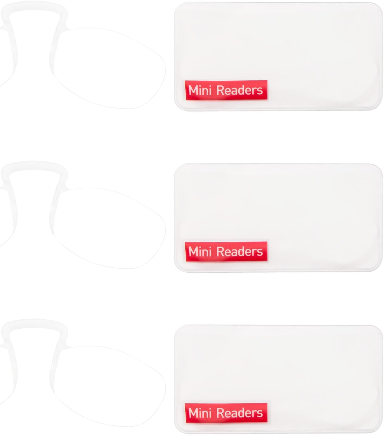Review: I bought the 2.5x set. I use these a cheaters, I wear them on the lower portion of my nose for reading.Pros: excellent clarity, light weight, fit well and do not fall off, durable (I dropped one in my shoe and walkd on it all day – did not break), so thin that I did not notice them in my shoe until I took them off, well worth the money – I have bought 2 3-packs and have put them everywhere I can think of where I may need to read (car, desk, kitchen table, living room chair, bedstead, pocket of my winter jacket) – just too cheap not to buy more than you think you “need.”Cons: easy to loose when you take them off – so clear that they are hard to see if laying on a table, the packaging is also clear I have had to put one of my grandson’s sticker on the case so that I can find it, they are easy to scratch.