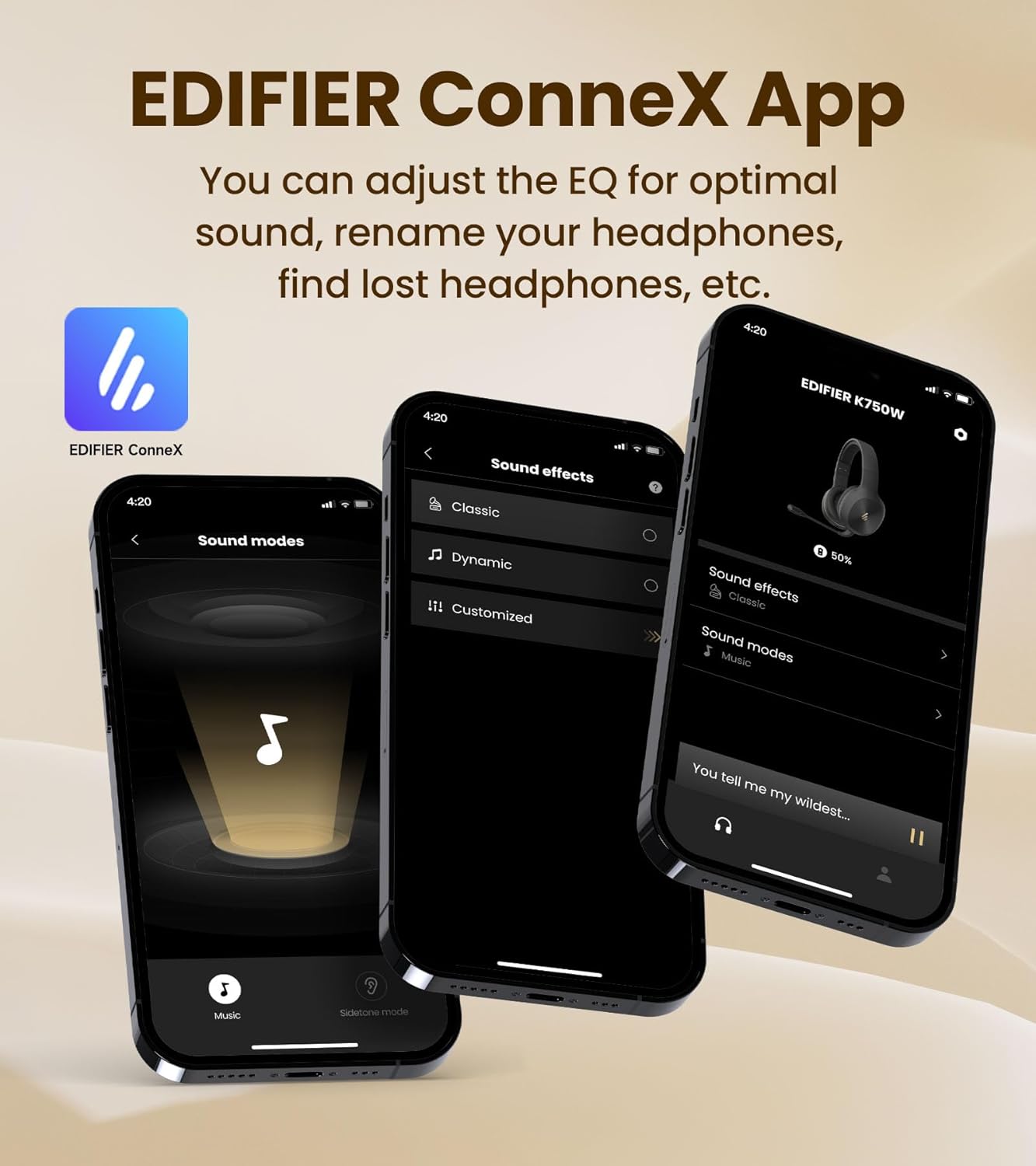 Review: I dont own any edifier sound device but normally I see good reviews, unfortunately this headphones does not live to the brand, First of all it is very light, plastic feel, aesthetically is well designed but when wearing it is not that confortable. The drivers are fixed and not able to swivel leaving a gap on the front of my ears. On the other hand, the cushion feels good and the overall light weight makes this device confortable to wear with the issue I mentioned before. Music sound quality is good but a very low level, although sound is clear it just does not have the power, this is more noticieble as you wear it for longer time, lows and highs the start dissappearing. The headphones has an app, edifier connect that pairs seamlesly, no issues here, you can manipulate some settings, the most unique feature is a feature on the app called sidetone mode where you can monitor your voice or sort of making this headphone a good choice for either phonecalls or gaming. The microphone is not integrated, it can be detached from the unit if you are not using but allows you to positiones for the best voice reception. Overall, this is not a headphone for music, it must be considered it as a good choice for voice calls.