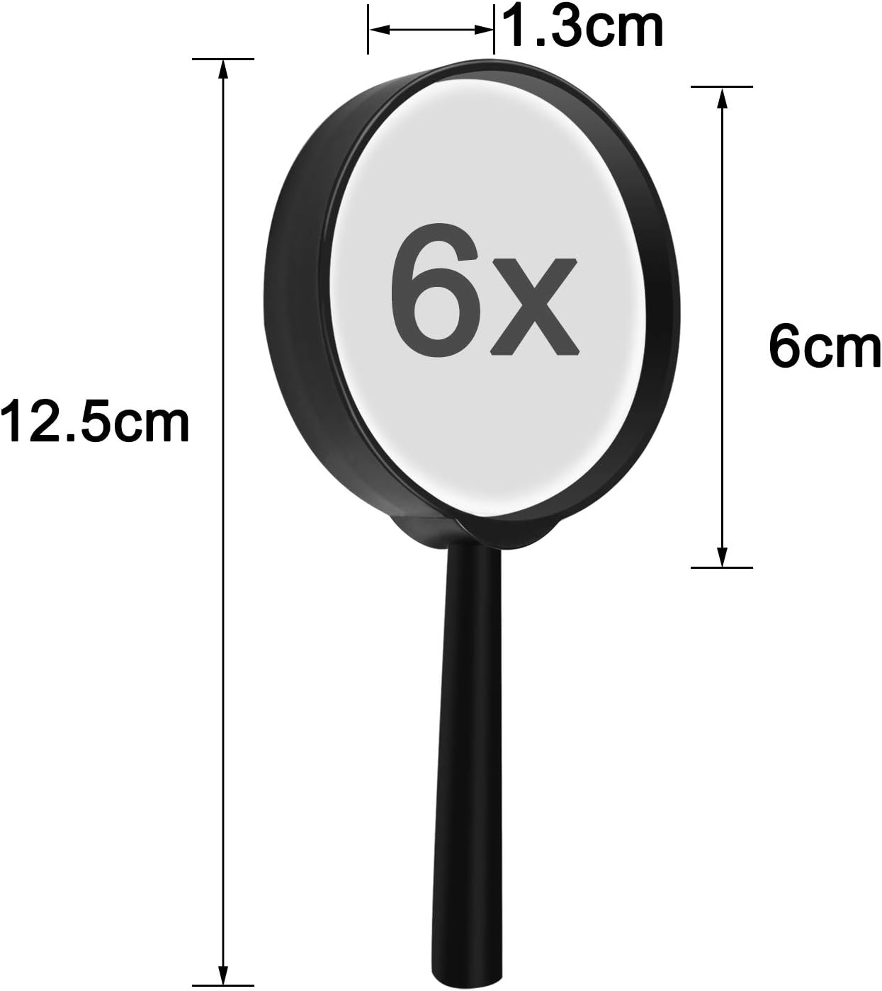 Review: I bought these Elcoho Handheld Magnifiers to read fine print. I was not expecting high quality at this price point. I was willing to accept some blurriness and minor scratches and manufacturing defects.What I cannot accept is the level of magnification. I measured the focal length of one of these magnifiers to be 190 mm. Using the standard equation for hand-held magnifiers of 250 mm / focal length they come out to be 1.3X, not 6X. This is not strong enough for them to be useful to me.