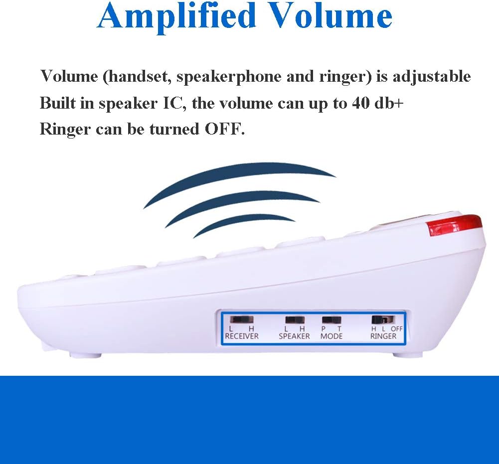 Review: Good phone, my Mom is almost blind and wears a hearing aid and she can hear it ring no problem.The volume on the handset is good but not as clear as one may like – decent but not crystal clear.And the cord (from handset to phone) could be a little longer.While she’s still testing it out, over-all, I think it’s a good product.