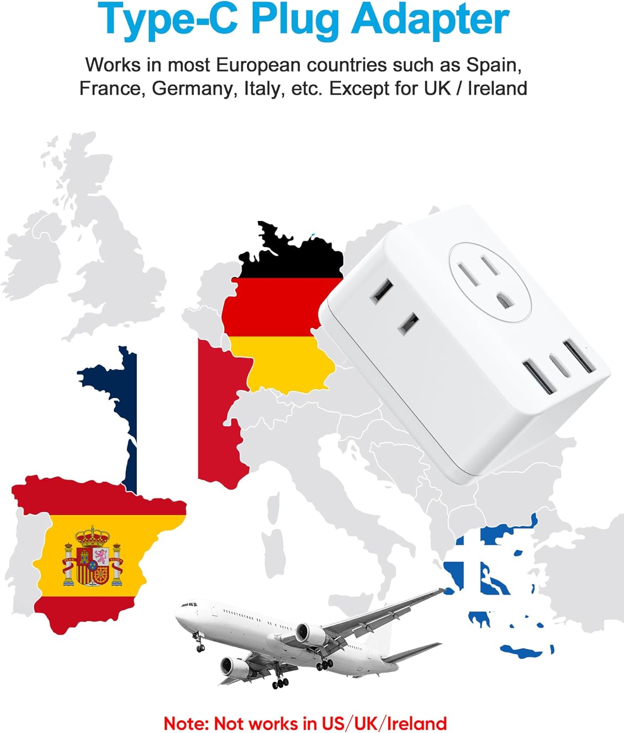 【US to Europe Plug Adapter】 Compatible in most European countries such as Italy, France, Spain, Germany, Greece, Austria, Belgium, Croatia, Denmark, Finland, Hungary, Portugal, Poland, Netherlands etc. Note: not work in UK/Ireland, US.