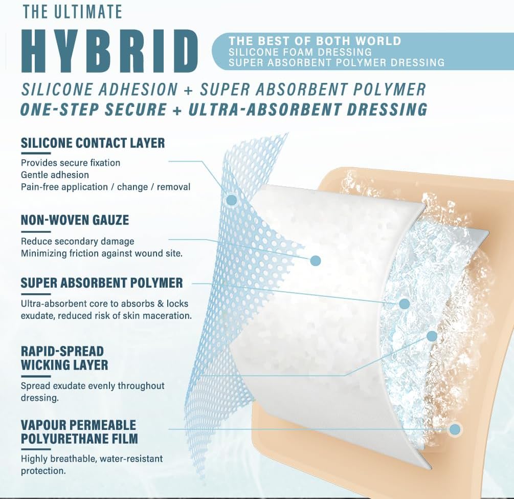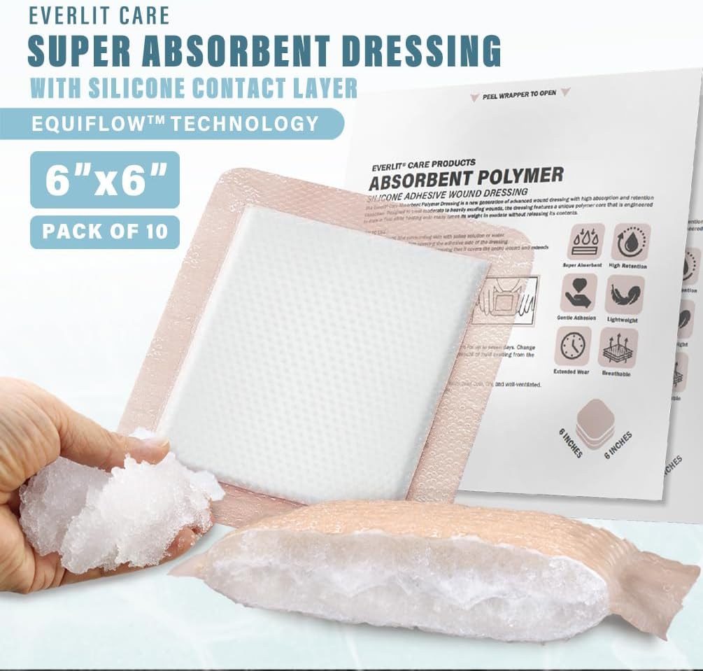 , Health & Household > Health Care > First Aid > Bandages & Bandaging Supplies > Gauze & Pads > Bandaging Pads, #EVERLIT #Silicone #Super #Absorbent #Dressing #Sterile #Adhesive #Bandage #Pad #Hig..,