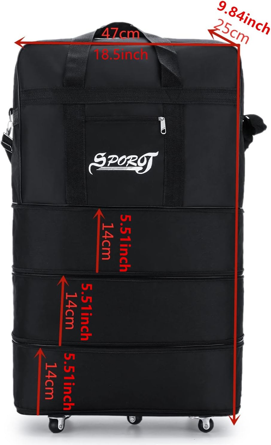Foldable Design: A total of 3 layer, each layer secured with robust zippers. It can provide large space by increasing layered mounts to solve all baggage trouble