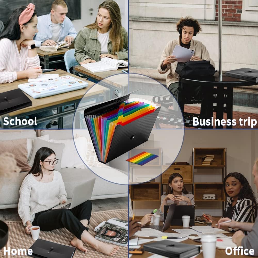 【RAINBOW COLORED DESIGN】Nicecho 13 Pockets File Folder is updated with nice colored inner pages for better visual sense. small colored labels can give your files a convenient classification, so that you can quickly find the paper you need.
