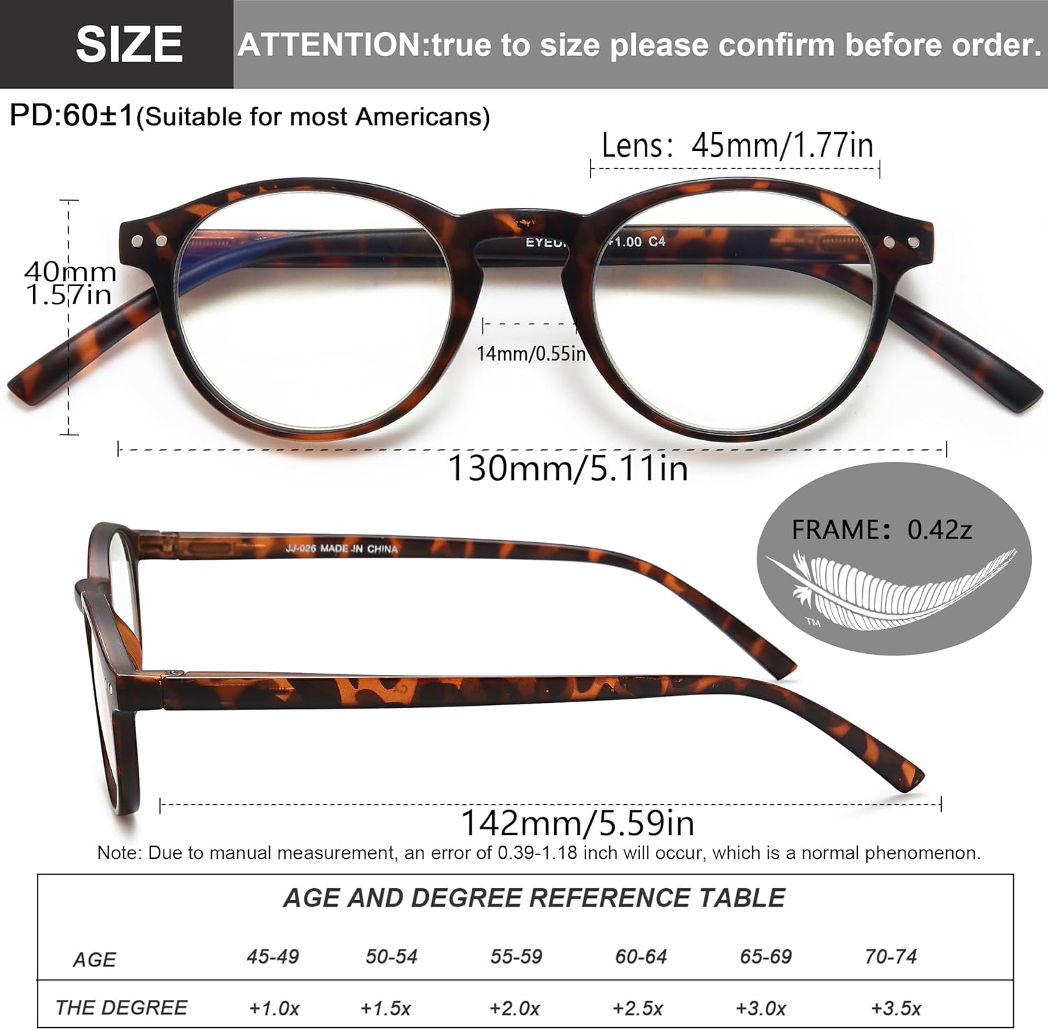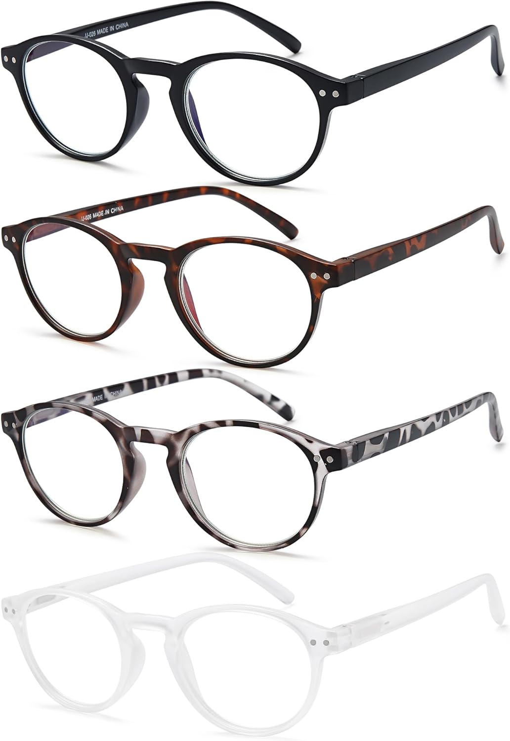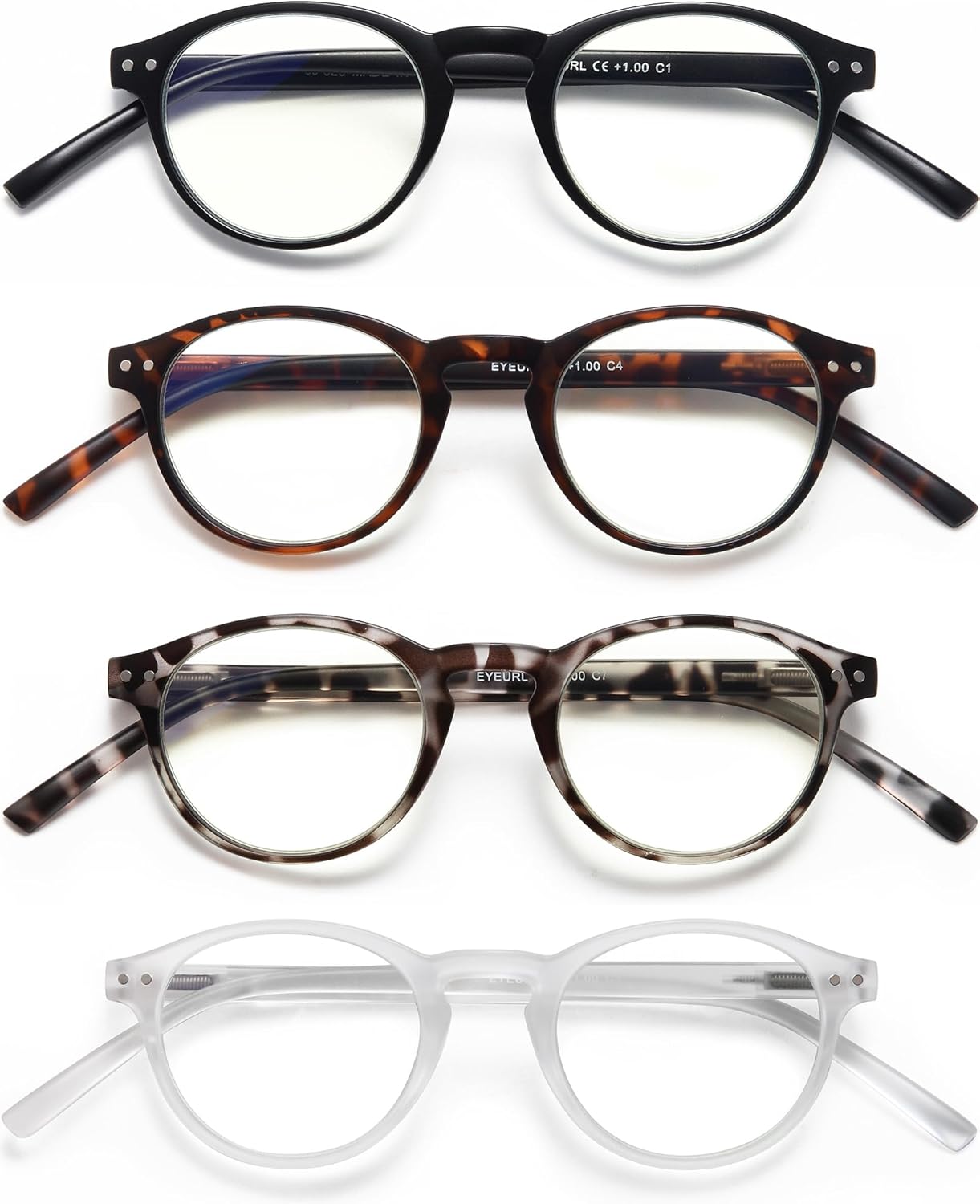 EYEURL 4-Pack Round Reading Glasses for Women Neck Hanging Blue Light Blocking Eyeglasses